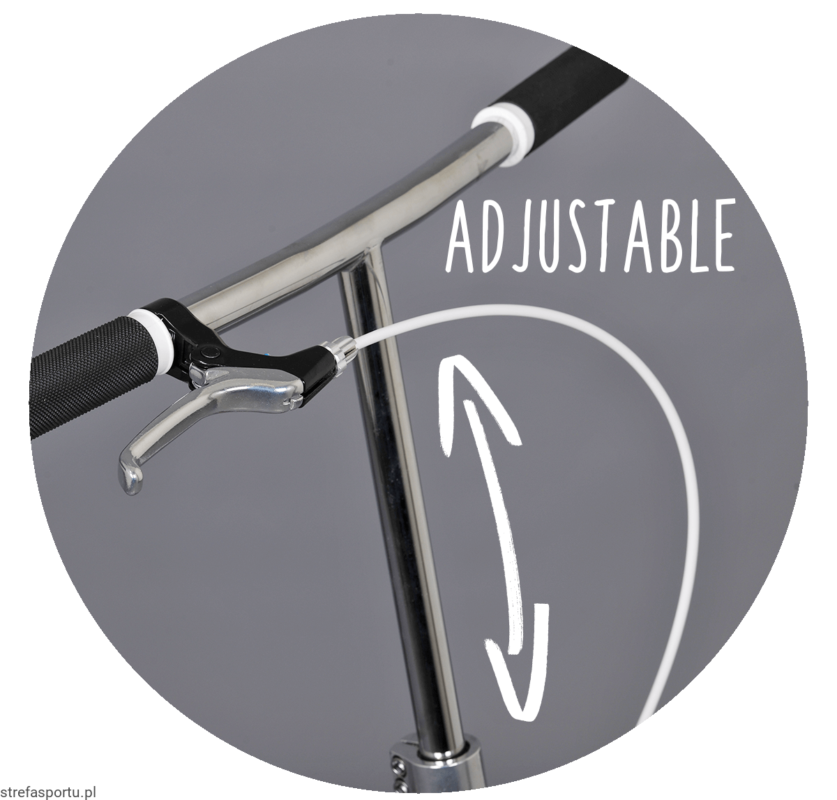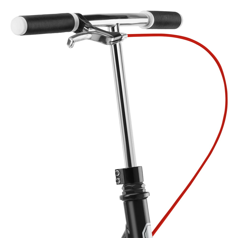 Wysokiej jakości 2-komponentowe (Dual-Density) chwyty z optymalną przyczepnością i doskonałym tłumieniem drgań. Miękka powierzchnia zewnętrzna zapewnia optymalną przyczepność i amortyzację, a twardszy rdzeń zapewnia bardzo pewny chwyt kierownicy. Tak więc nawet w trudniejszym terenie mistrz kierownicy zapanuje nad swoją hulajnogą.