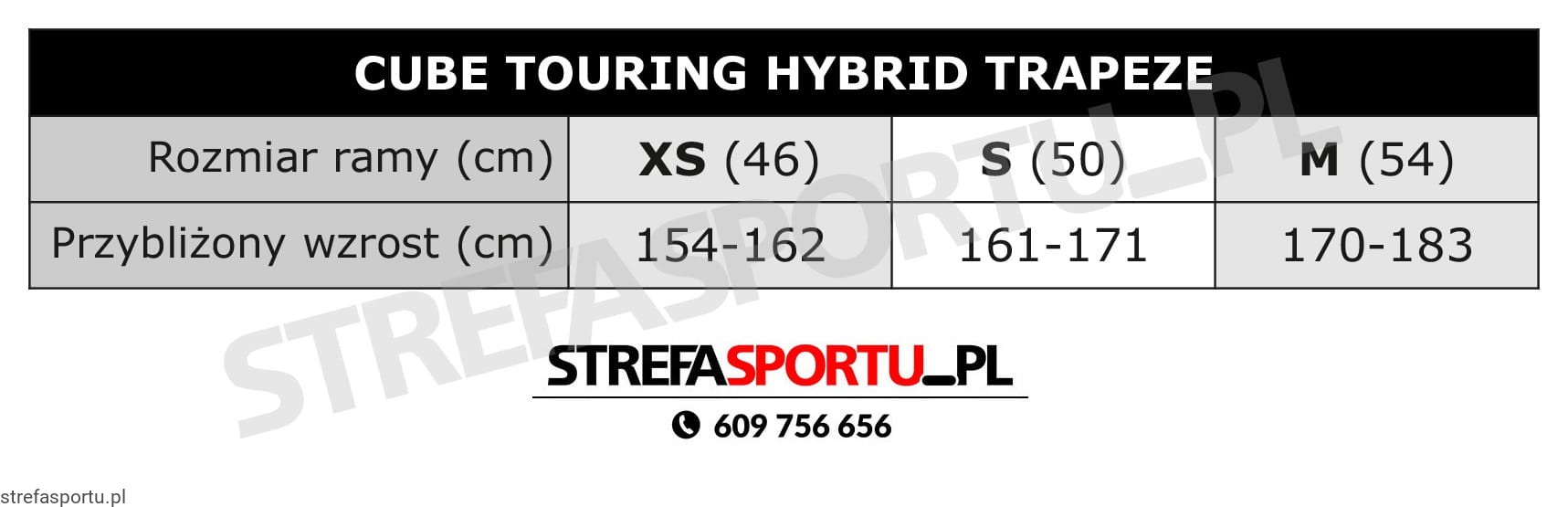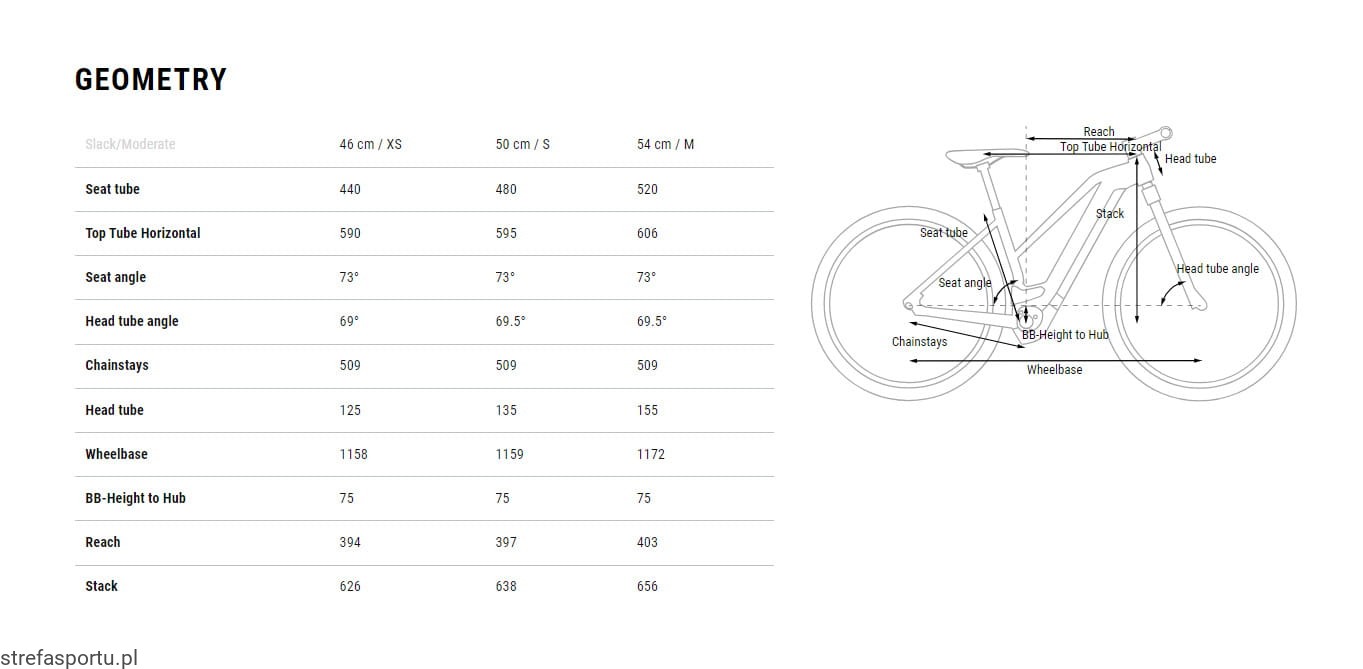 - Rozmiarówka: Trapeze: 46cm, 50cm, 54cm
