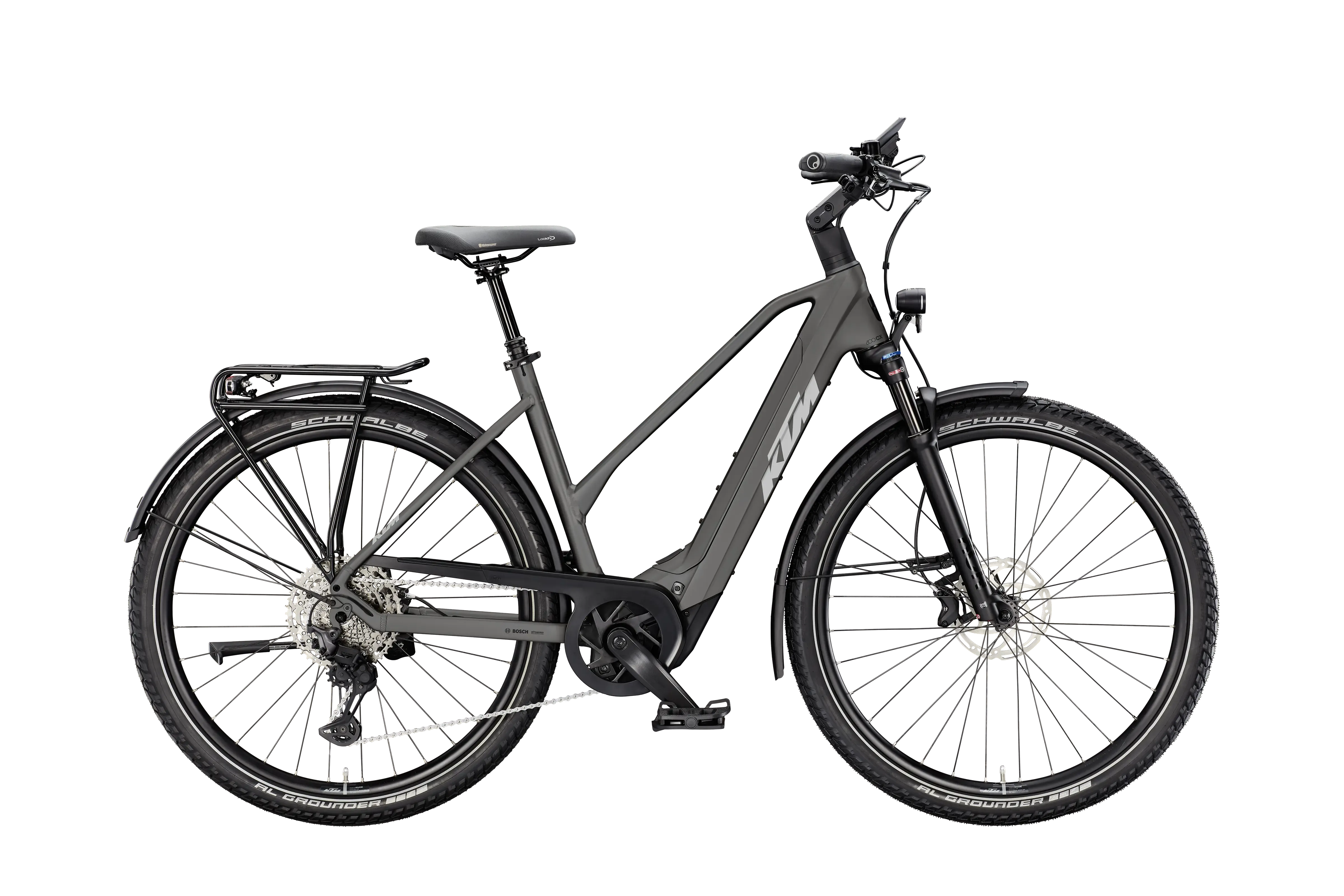 JAKOŚĆ. KOMFORT. WYDAJNOŚĆ. STYL. E-Trekking Onroad to jeden z najbardziej udanych segmentów KTM, który z impetem wkracza w nowy rok, prezentując ulepszony system napędowy BOSCH BDU384Y. Technicznie wyrafinowany przepis na sukces zawiera w sobie cztery kluczowe elementy: jakość, komfort, wydajność oraz styl, które sprawiają, że jazda na tym rowerze to czysta przyjemność.