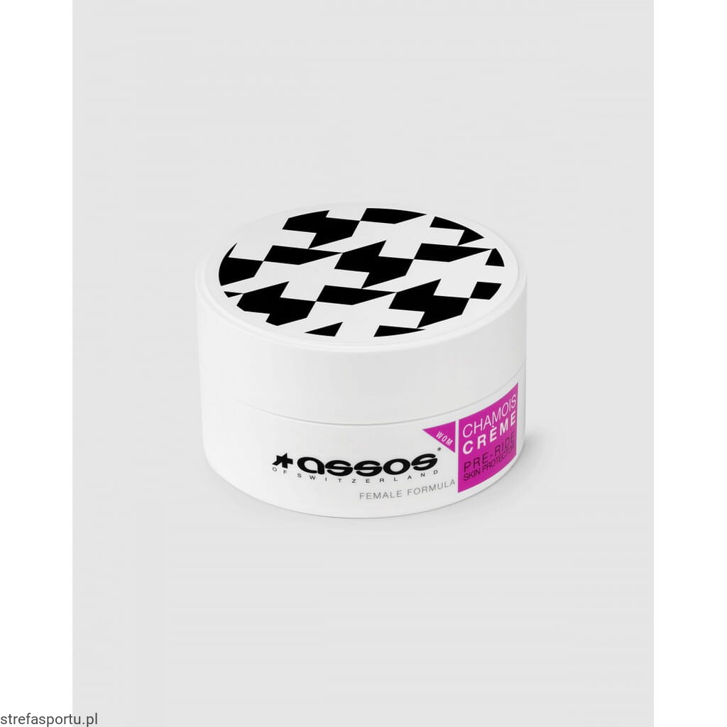 Jest niezbędnikiem każdego kolarza. Krem działa bardzo skutecznie zabezpieczając wrażliwe części ciała narażone na bolesne otarcia wynikające z długotrwałego kontaktu z siodełkiem rowerowym. Formuła kremu skutecznie zmniejsza tarcie oraz niweluje dyskomfort. Po zastosowaniu daje kojący, chłodzący efekt na skórze, co pomaga utrzymać uczucie świeżości na dłużej. Assos Chamois zapobiega również stanom zapalnym i podrażnieniom skóry, ze względu na swoje właściwości antybakteryjne, wykorzystując naturalne ekstrakty utrzymuje wkładkę spodenek w należytej higienie. Dużym atutem jest jego formuła, która nie brudzi ubrań.