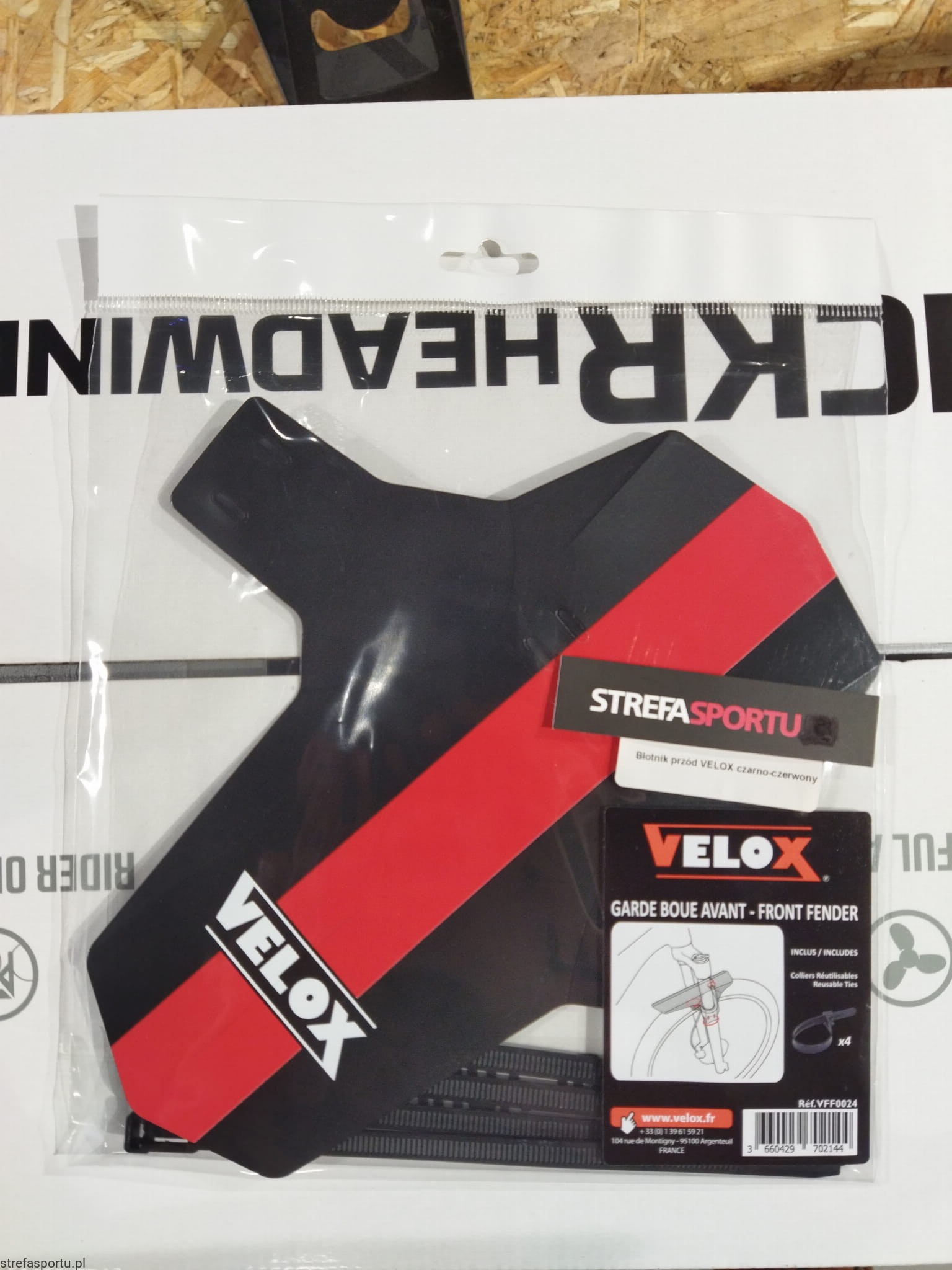 Lekki i wytrzymały błotnik przedni montowany na amortyzator. Opaski zaciskowe w zestawie.