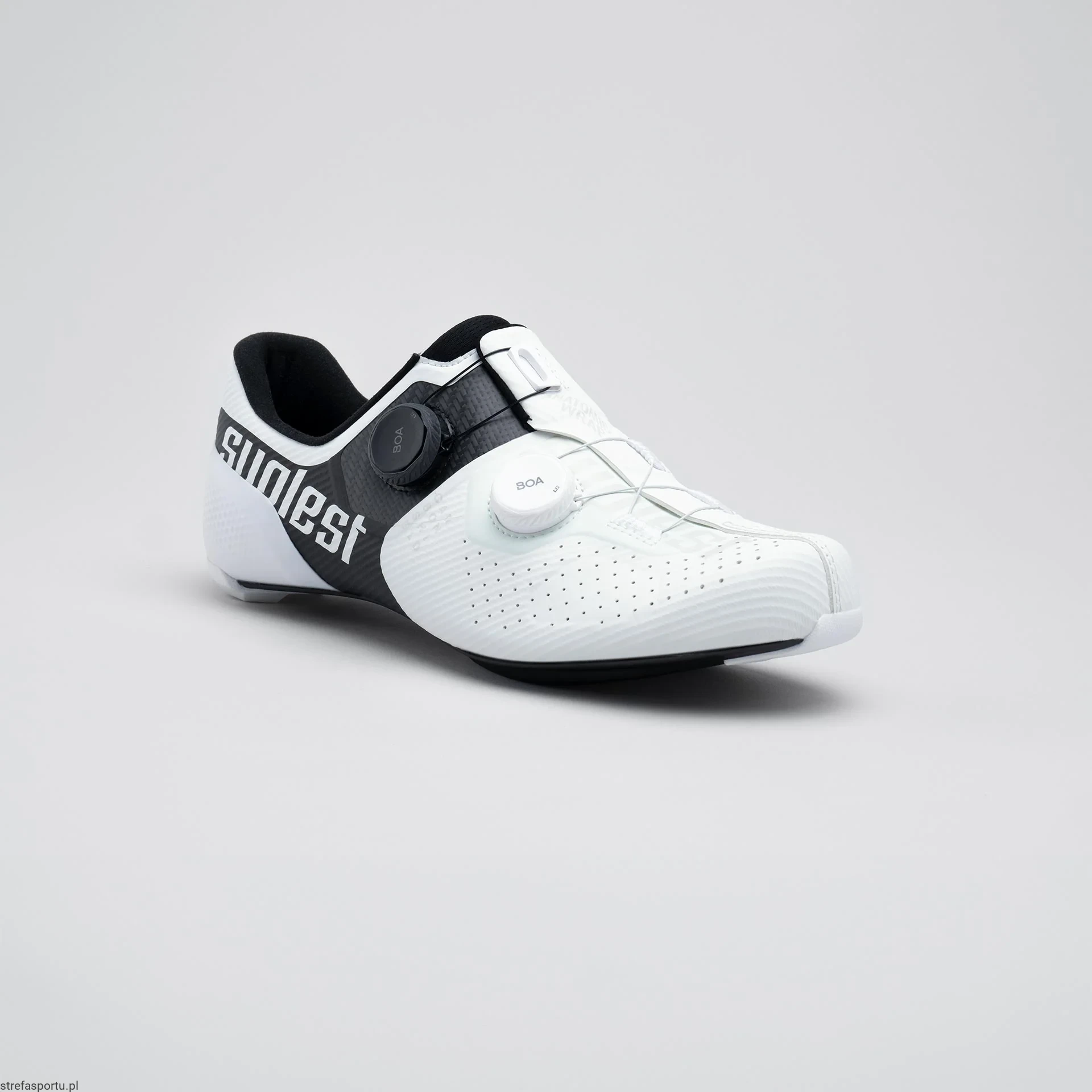 Zaprojektowane, aby sprostać wymaganiom najlepszych kolarzy, ROAD PRO to nasz flagowy, wysokowydajny but szosowy, stworzony do intensywnego ścigania i zaprojektowany tak, aby przekroczyć oczekiwania najlepszych sportowców na świecie. Cholewka ma konstrukcję warstwową, łączącą podstawę z siateczki 3D z cienką warstwą TPU, która zapewnia wysoki poziom komfortu, oddychalności i trwałości. Ta unikalna konstrukcja zapewnia elastyczność, a jednocześnie stabilność, idealną do jazdy o wysokiej intensywności. Nasz ROAD PRO ma strefę FLEX ZONE w przedniej części stopy, strategicznie zaprojektowaną, aby zwiększyć komfort i zmniejszyć zmęczenie podczas pedałowania z dużym naciskiem, pozwalając kolarzom zachować moc na długich dystansach. Aby zapewnić idealne dopasowanie, podwójny system BOA® Fit System Li2 oferuje mikroregulację, umożliwiając szybkie i dokładne dopasowanie. W połączeniu z zapiętkiem 3D zapewnia precyzyjne mocowanie stopy, minimalizując poślizg i zwiększając stabilność dla maksymalnej wydajności.Specjalnie stworzone, najdoskonalsze kopyto kolarskie jest rdzeniem naszych butów i zostało zaprojektowane dla kolarzy nastawionych na wydajność. Jest tak specyficzny i wyjątkowy, że stanowi prawdziwy ślad stopy suplest. Koncepcja ERGO 360° opiera się na naszym ostatnim modelu, definiując kształt i dopasowanie naszych butów.