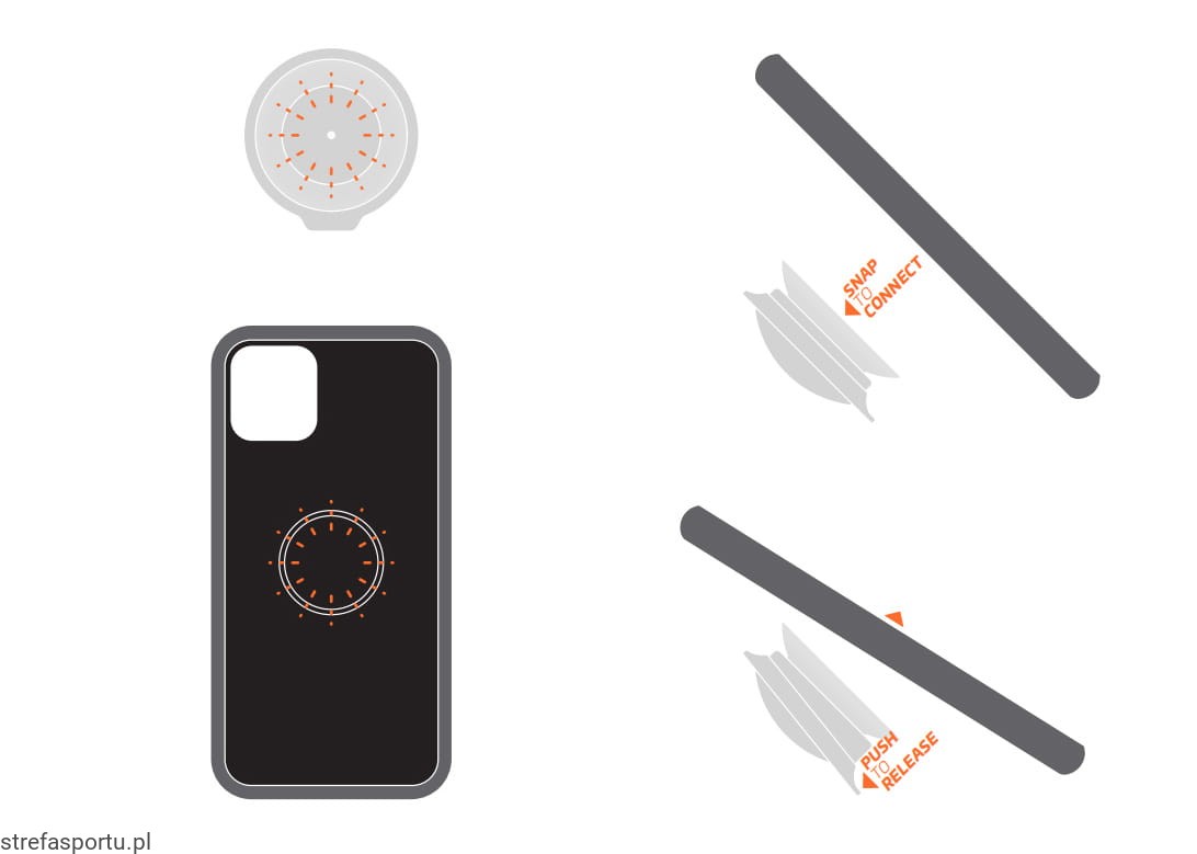 Etui na uchwyt do smartfona VACUUM. Dzięki genialnie prostemu połączeniu siły magnetycznej i podciśnienia smartfon można obsługiwać jedną ręką i obracać się o 360°, a mechanizm zapadkowy zapobiega obracaniu się podczas jazdy – nawet na nierównych trasach!
