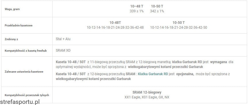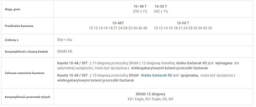 Kaseta 10-48 / 50T z 12-biegową przerzutką SRAM : Klatka Garbaruk RD jest opcjonalna, może być sprzężona z wielkogabarytowymi kołami przerzutki Garbaruk