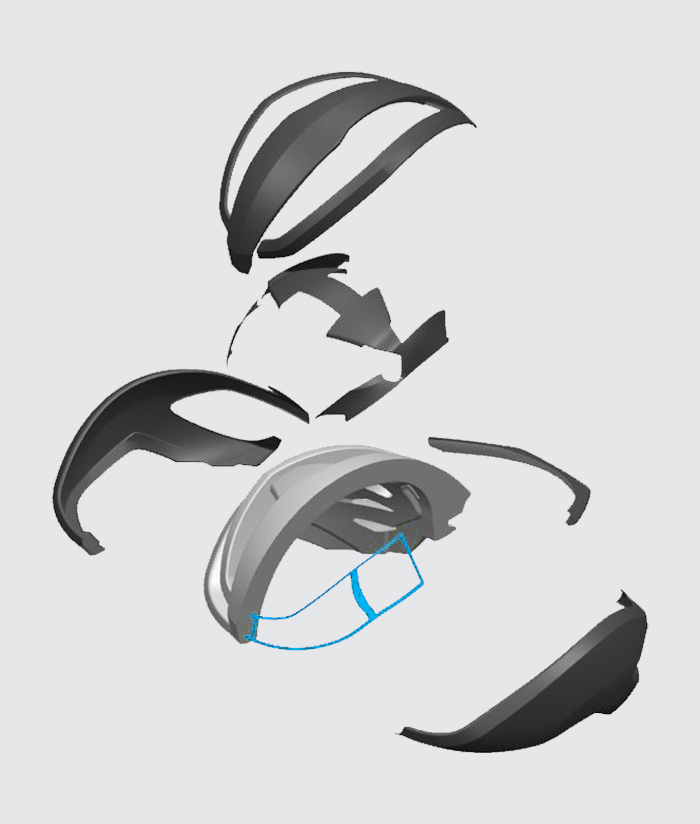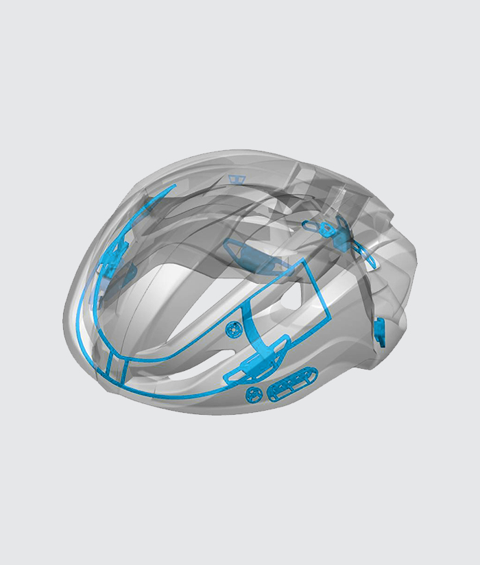 Konstrukcja zbrojenia wewnętrznego Ibex 2.0Kaski są wzmocnione wewnętrzną ramą zintegrowaną z EPS, szkieletowa rama nie tylko utrzymuje kask w jednym kawałku, ale także sprawia, że jest on mocniejszy i bardziej odporny, aby chronić głowę w przypadku kolizji. |