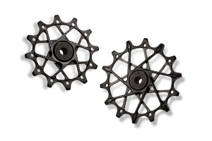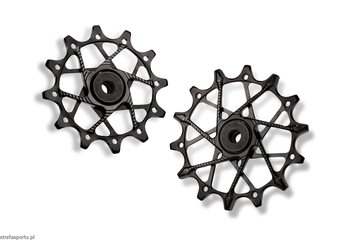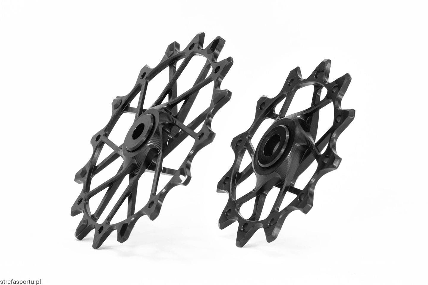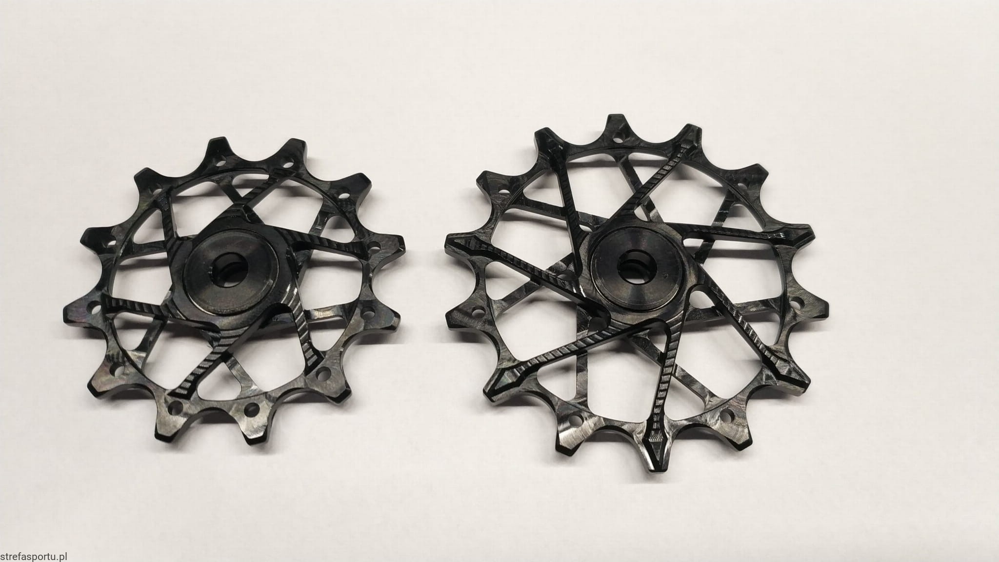 Nasze koła pasowe do przerzutek są dostępne w różnych zestawach, zaczynając od 11T + 14T (odpowiednio górne + dolne koło pasowe), do 11-biegowych przerzutek tylnych Shimano ze standardową wózkiem przerzutki i 14 + 14T do 12-biegowych przerzutek tylnych Shimano ze standardowym koszem . Możesz ulepszyć swój standardowy 11-biegowy tylny mech za pomocą naszego zestawu 11T + 16T w połączeniu z wózkiem Garbaruk RD dla 11-biegowych przerzutek Shimano, aby poprawić jakość zmiany przełożeń (konfigurowalne na tej stronie, przeczytaj więcej o klatce tutaj ).