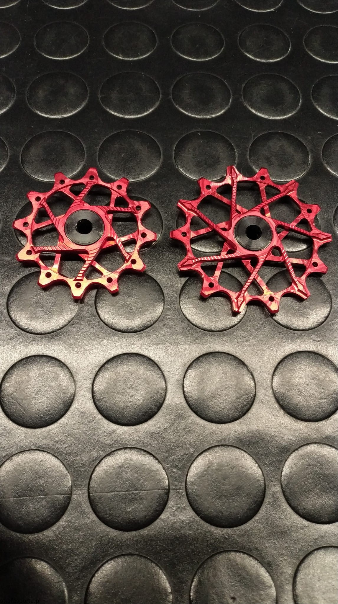 Nasze koła pasowe do przerzutek są dostępne w różnych zestawach, zaczynając od 11T + 14T (odpowiednio górne + dolne koło pasowe), do 11-biegowych przerzutek tylnych Shimano ze standardową wózkiem przerzutki i 14 + 14T do 12-biegowych przerzutek tylnych Shimano ze standardowym koszem . Możesz ulepszyć swój standardowy 11-biegowy tylny mech za pomocą naszego zestawu 11T + 16T w połączeniu z wózkiem Garbaruk RD dla 11-biegowych przerzutek Shimano, aby poprawić jakość zmiany przełożeń (konfigurowalne na tej stronie, przeczytaj więcej o klatce tutaj ).