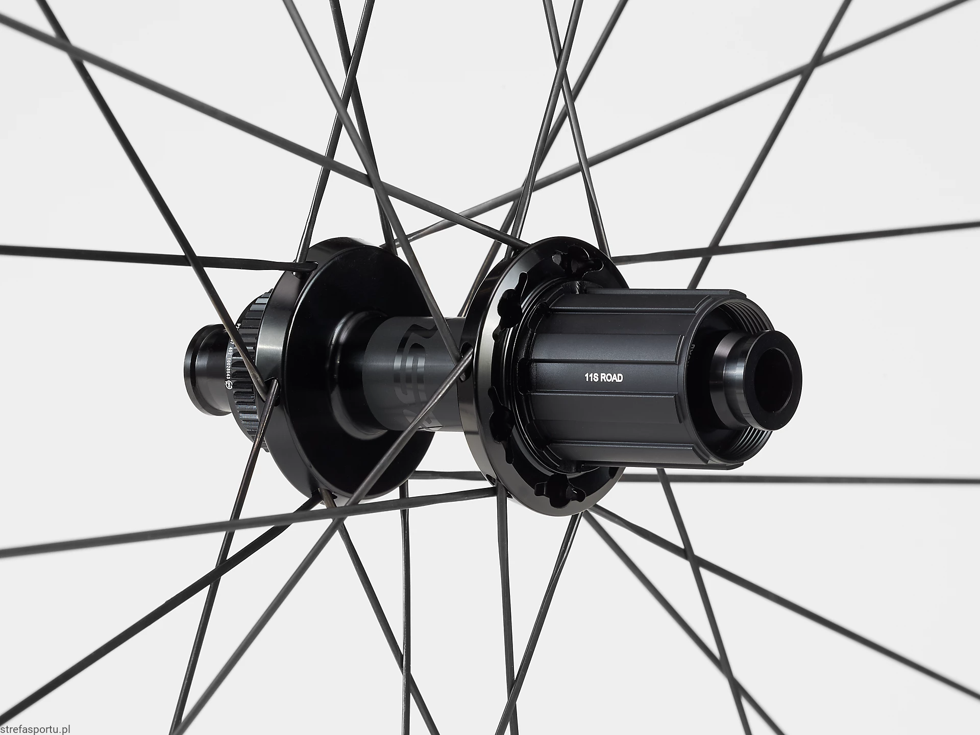 Sztandarowe lekkie koło szosowe z włókna węglowego marki Bontrager, o głębokości profilu 75 mm, zaprojektowane dla najwyższych wartości prędkości, stabilności i pewności działania w każdych warunkach.