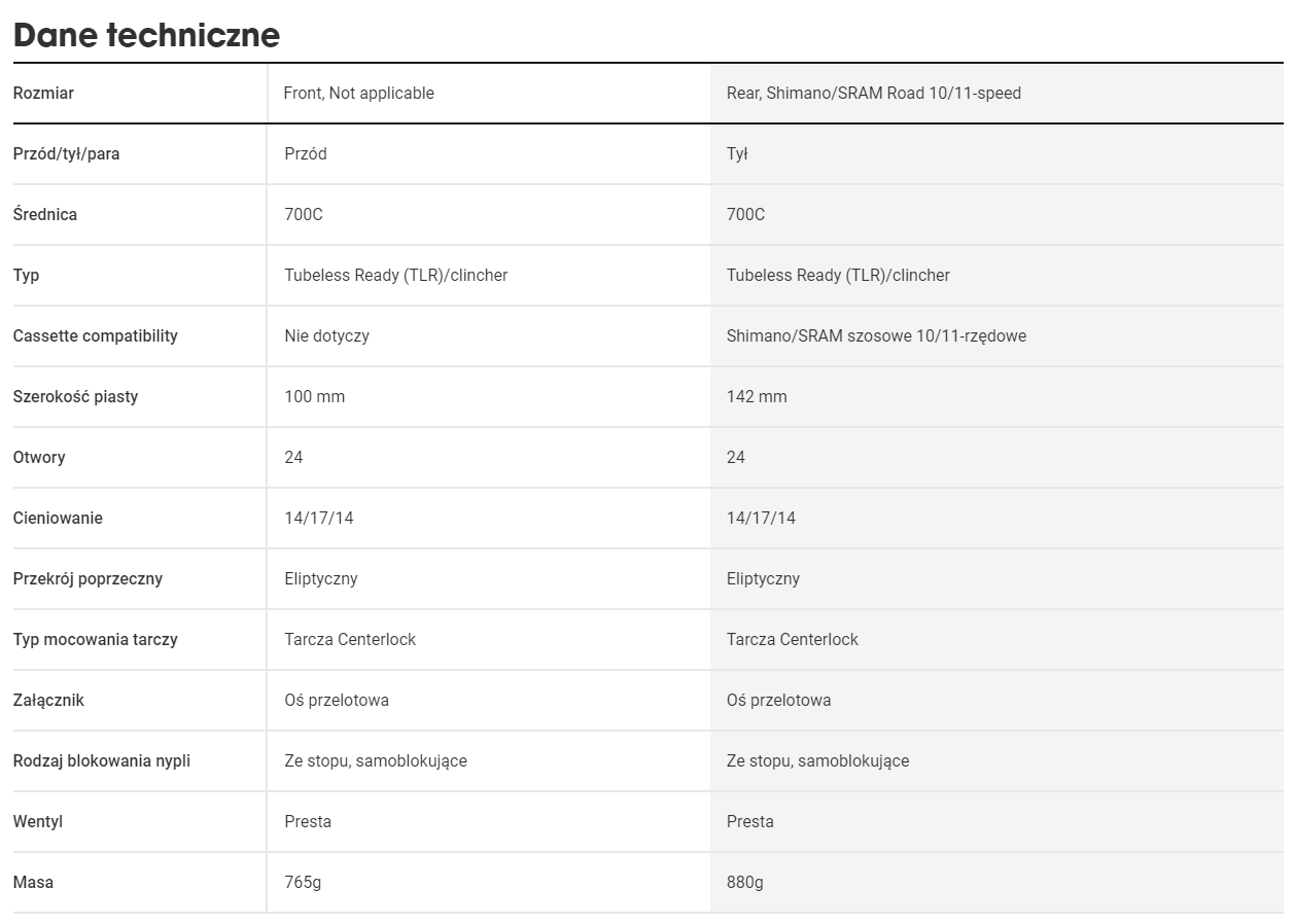 - Piasty pod tarcze Centerlock z osią przelotową 12 mm z przodu i z tyłu, dostępny zestaw zamienny dla osi QR i 15 mm