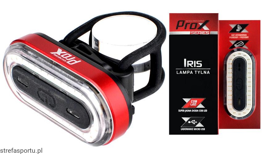Lampka rowerowa tylnia ProX IRIS. Lampka rowerowa na tył, akumulator: Li-Po 350 mAh, ładowana na USB