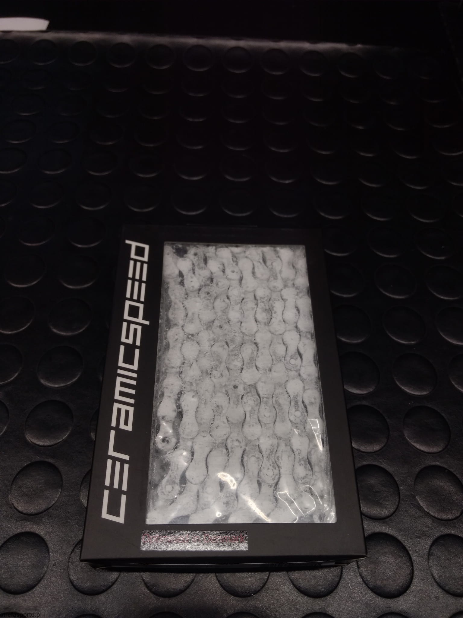 W odległości 600 km / 370 mil, aby skorzystać z pełnych zalet łańcucha wyścigowego CeramicSpeed UFO, nie wolno myć łańcucha przed przekroczeniem przebiegu. Jeśli jednak łańcuch wymaga czyszczenia, użyj suchej szmatki lub miękkiej szczotki i ostrożnie usuń brud z łańcucha. Podczas zdejmowania łańcucha w celu konserwacji lub czyszczenia pamiętaj, aby zainstalować go ponownie w tym samym kierunku, co poprzednio. W przypadku łagodnego prysznica, w którym łańcuch nie był wystawiony na działanie wody dłużej niż kilka minut, nie powinno to wpłynąć na właściwości łańcucha.