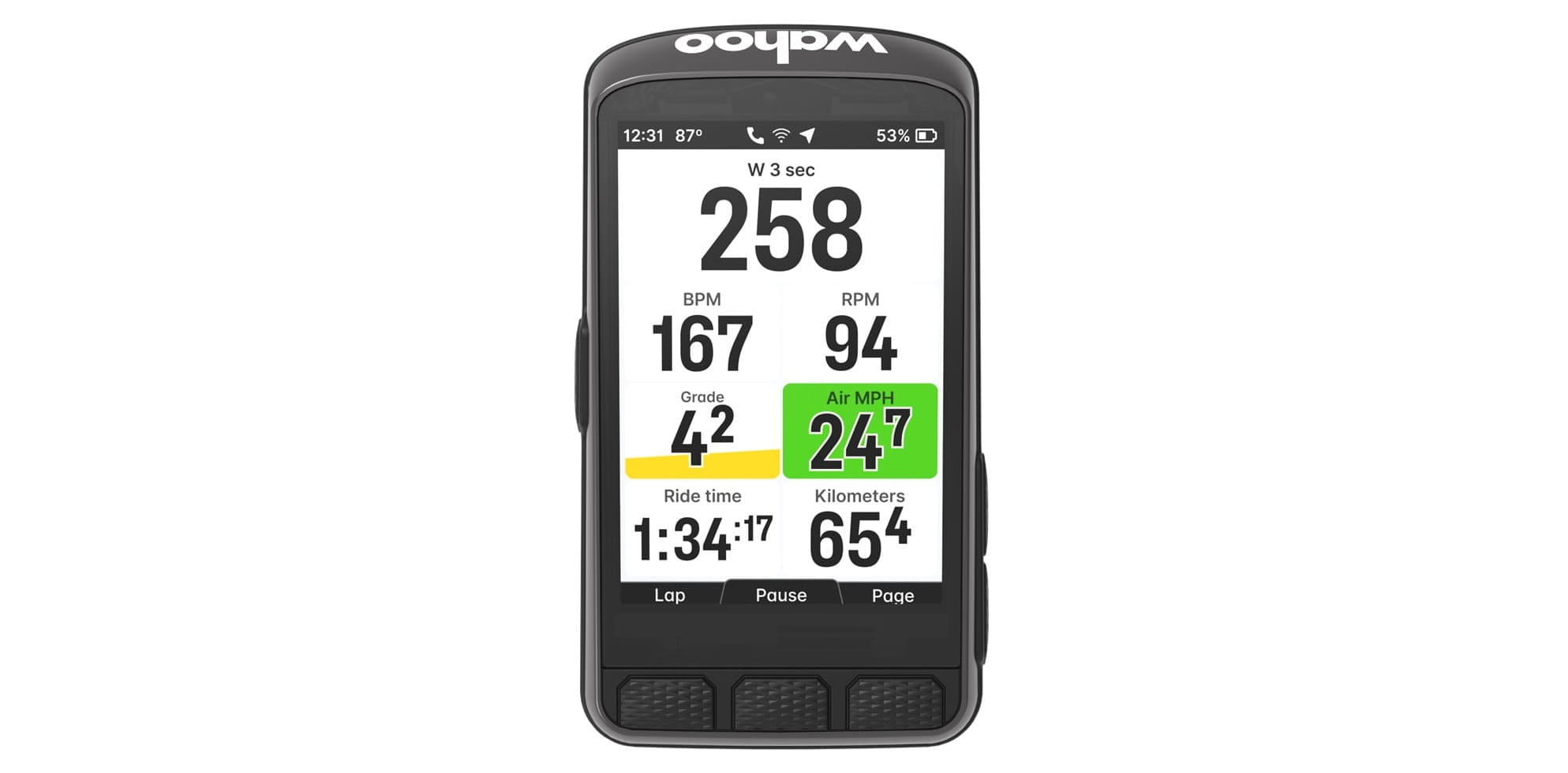 NOWOŚĆ W KATEGORII - zintegrowany czujnik wiatru: Wahoo Wind Dynamics™ (WWD) daje możliwość pomiaru wpływu oporu powietrza w czasie rzeczywistym oraz analizę tych danych po zakończeniu jazdy. Pozwala to ocenić jaki wpływ w trakcie poszczególnych etapów jazdy miał wiatr lub inni kolarze w przypadku jazdy grupowej, aby precyzyjniej oszacować pozostałe, kluczowe parametry.