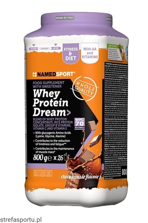 Skład: Białkowy suplement diety z enzymami i witaminami. Ze słodzikiem. Smak musu czekoladowego. Składniki: Koncentrat białka serwatkowego (mleko), izolat białka ryżowego (zawiera soję), kakao o obniżonej zawartości tłuszczu (8,3%), L-glicyna, chlorowodorek L-lizyny, L-alanina, aromaty, substancje zagęszczające: guma ksantanowa, guma guar; substancja słodząca: sukraloza; Witamina C (kwas L-askorbinowy), Witamina E (DL-alfa-tokoferol), Gamma-oryzanol, kompleks enzymów z substratu roślinnego, Niacyna (nikotynamid), Kwas pantotenowy (D-pantotenian wapnia), Witamina B6 (chlorowodorek pirydoksyny ), ryboflawina, tiamina (chlorowodorek tiaminy), kwas foliowy (kwas pteroilomonoglutaminowy), biotyna (d-biotyna), witamina B12 (cyjanokobalamina).