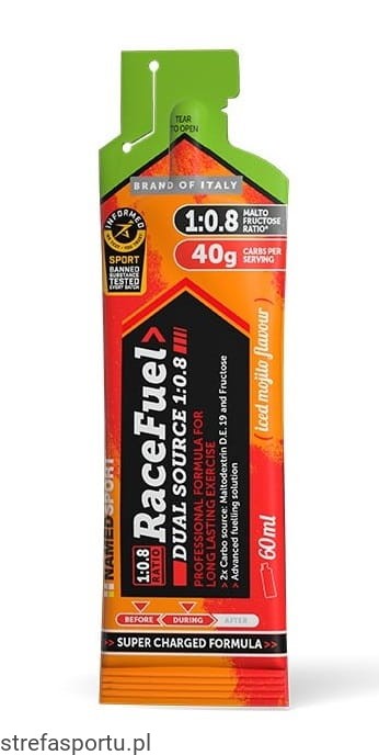 Żel Race Fuel oparty jest na wysokiej dawce węglowodanów, pochodzących z dwóch źródeł, maltodekstryny i fruktozy. Te węglowodany dostarczane są w specjalnej proporcji 1:0,8, co zapewnia optymalną wydajność energetyczną.