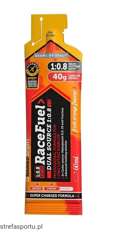 Żel Race Fuel oparty jest na wysokiej dawce węglowodanów, pochodzących z dwóch źródeł, maltodekstryny i fruktozy. Te węglowodany dostarczane są w specjalnej proporcji 1:0,8, co zapewnia optymalną wydajność energetyczną.
