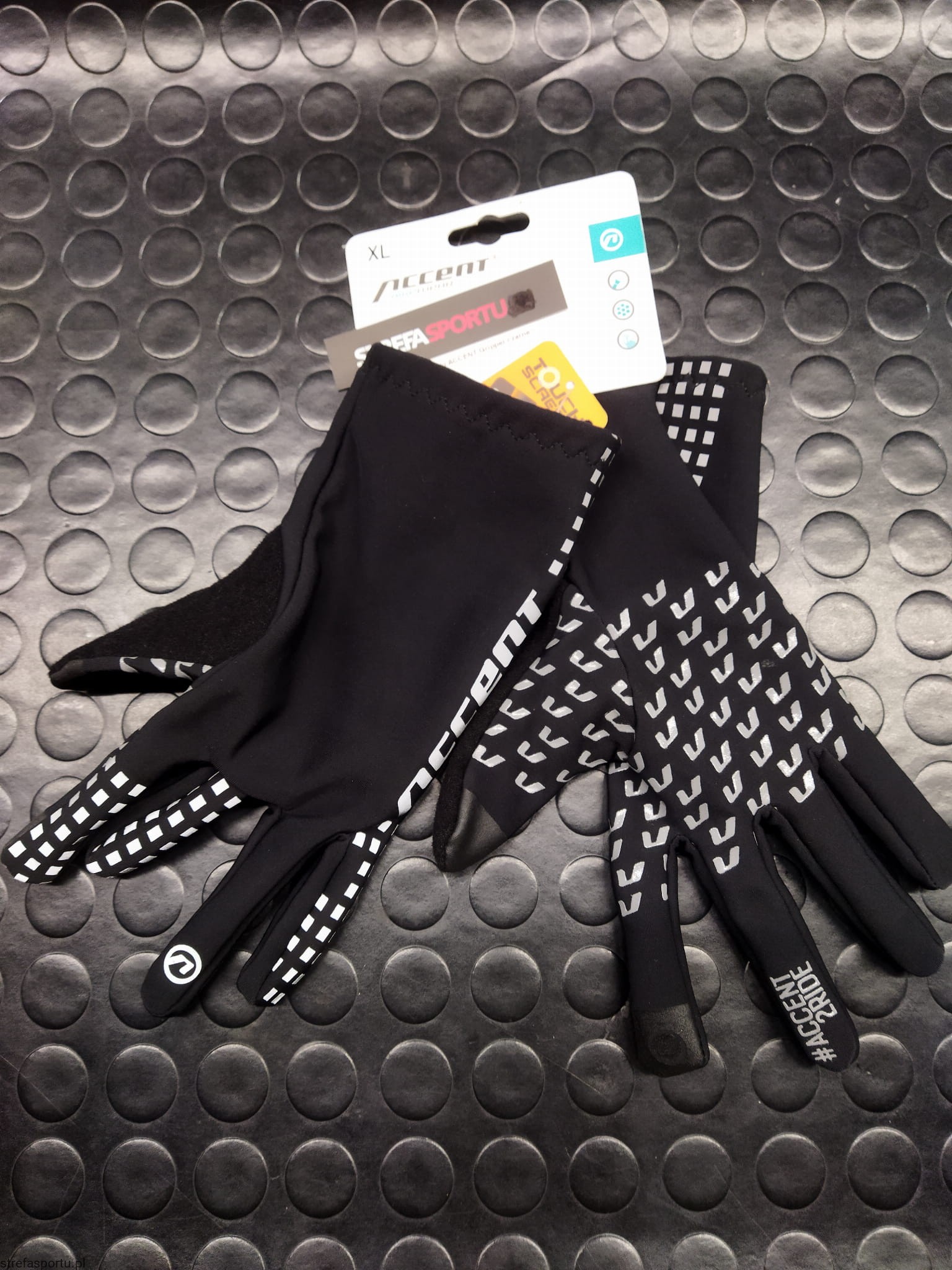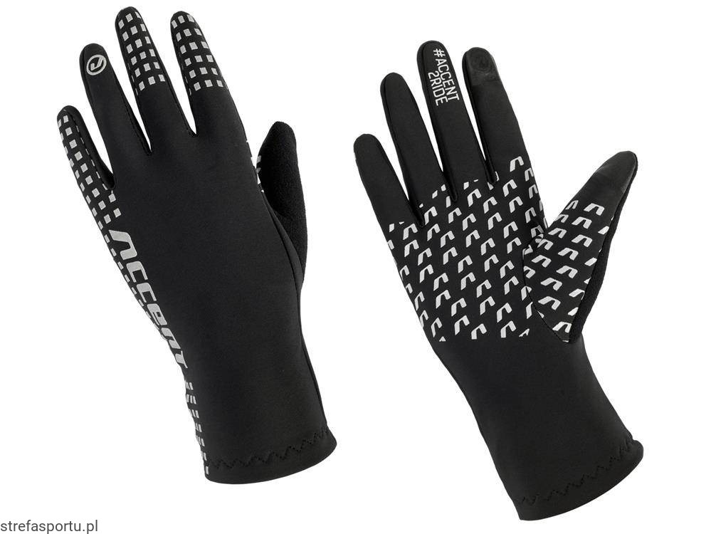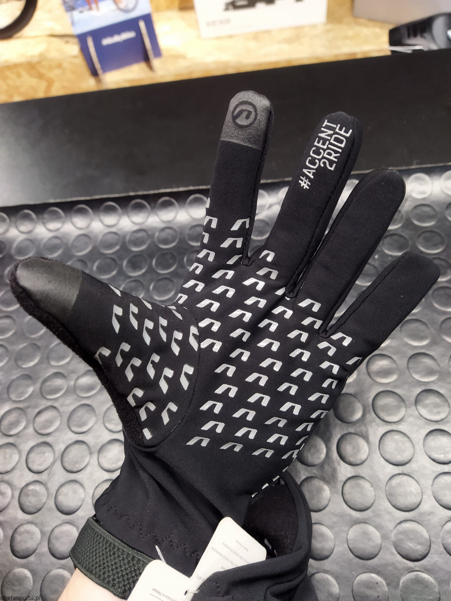 Lekkie rękawiczki z kolekcji zimowej Accent. Przystosowane na pierwsze jesienne dni, kiedy zaczyna robić się chłodno. Silikonowy wzór na wewnętrznej stronie dłoni zapewni dobry chwyt. Specjalna powierzchnia na palcu wskazującym i kciuku pozwoli używać ekranu dotykowego. Dodatkowe elementy odblaskowe poprawią widoczność na drodze. Idealne dopasowanie do dłoni nie krępuje ruchów. Mogą być także stosowane jako dodatkowa izolacja pod grubszą rękawiczkę.