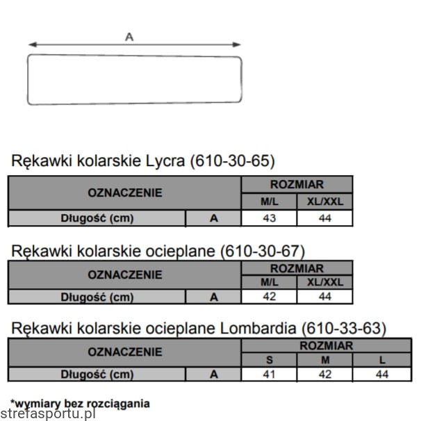 Rękawki kolarskie wykonane z elastycznej tkaniny LYCRA®. Dobrze oddychają i odprowadzają pot. Szybko schną. Dzięki wykończeniu taśmą odpowiednio utrzymują się na swoim miejscu podczas jazdy.