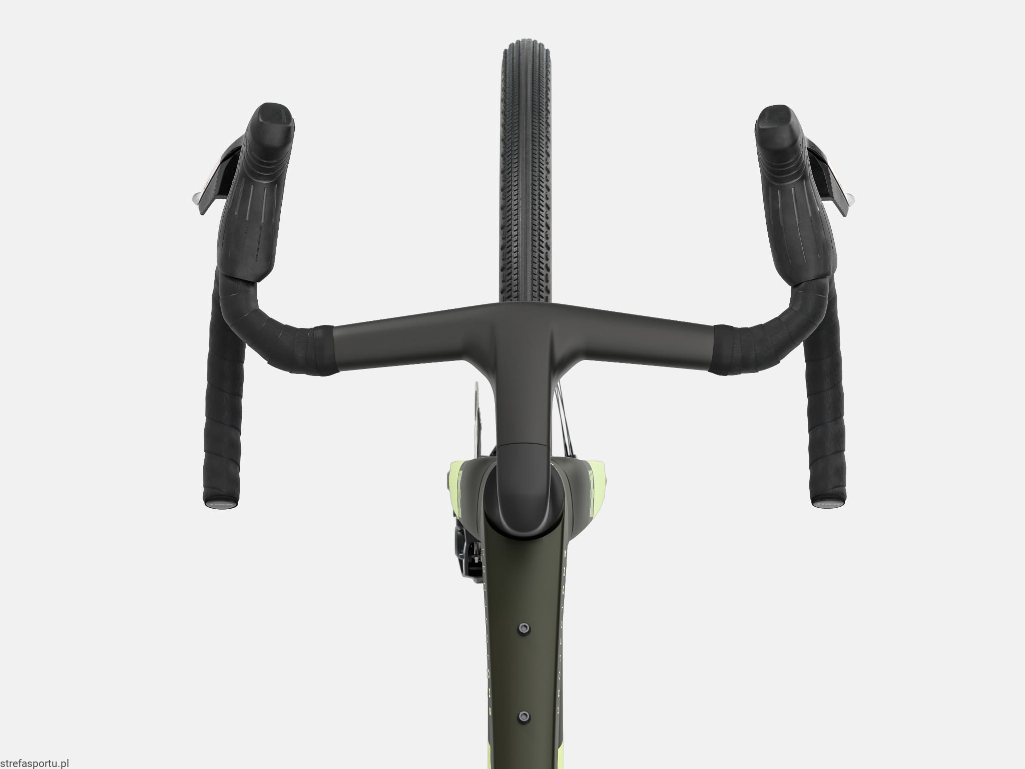 Zintegrowana kierownica/mostek Trek Aero RSL, włókno węglowe OCLV, dopasowanie wyścigowe, zasięg 80 mm, głębokość 124 mm, szerokość przy klamkomanetkach 41 cm, szerokość przy chwycie dolnym 44 cm, długość mostka 110 mm