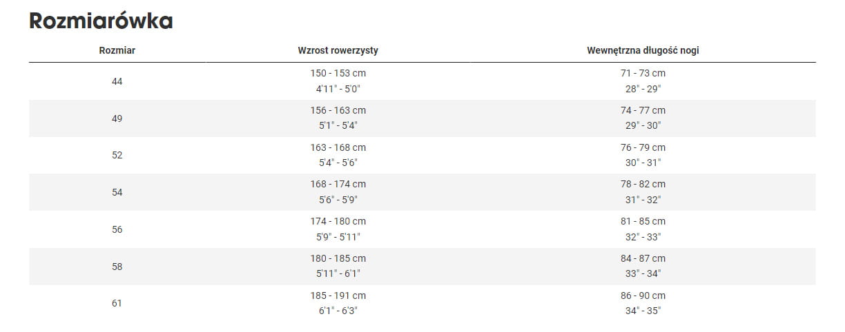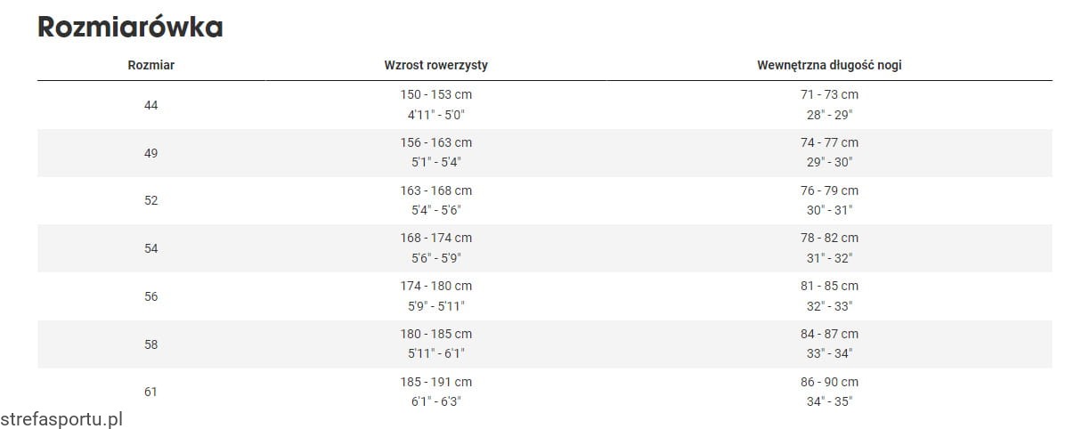 - Rozmiar: 44, 49, 52, 54, 56, 58, 61