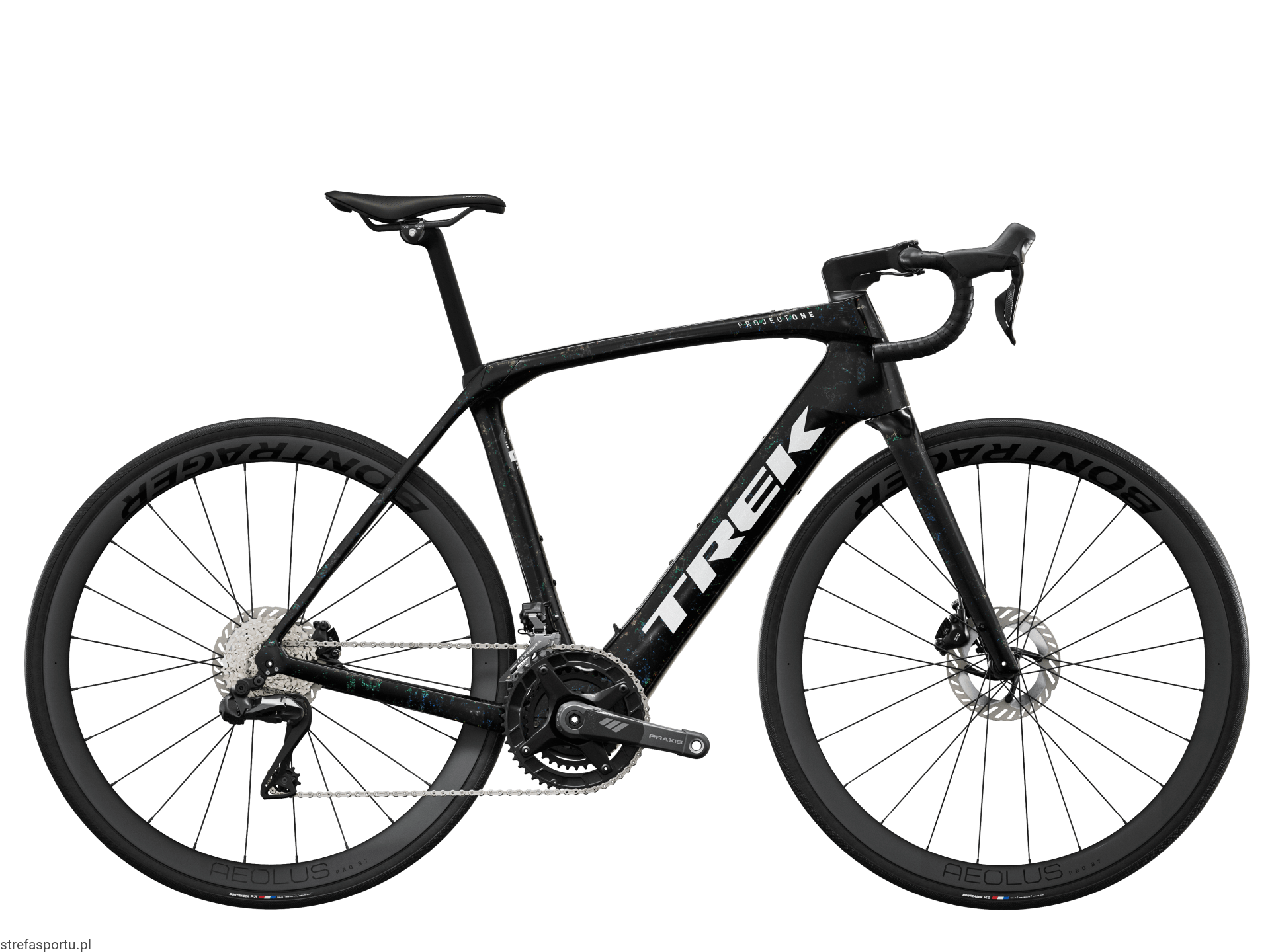 - Koło przednie Bontrager Aeolus Pro 37, włókno węglowe OCLV, przystosowane do zastosowania bezdętkowego Tubeless Ready, profil 37 mm, sztywna oś przelotowa 100x12 mm