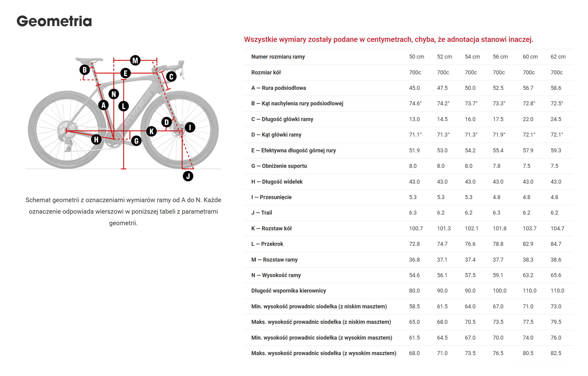 Trek RCS Pro, -7 stopni, 80 mm długości - Rozmiar: 52, 54