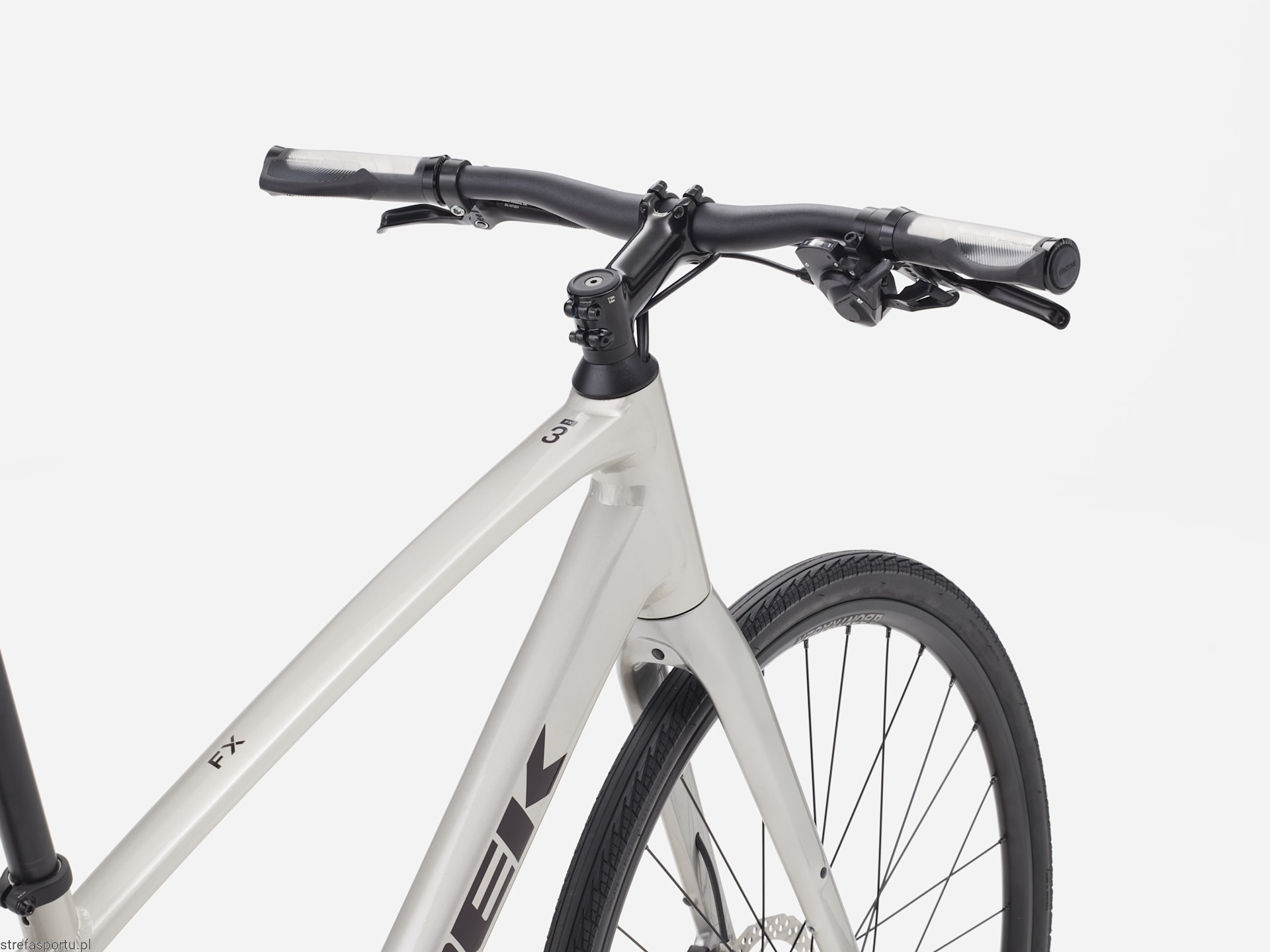 FX 3 to wszechstronny rower hybrydowy zorientowany na osiągi, wygodę i użyteczność. Ma też lekką ramę z aluminium, widelec z włókna węglowego, napęd 1x i mocne hamulce tarczowe działające w każdych warunkach pogodowych. To idealna maszyna na dojazdy do pracy, jeśli właśnie tego potrzebujesz, lub świetny towarzysz do ćwiczeń podczas jazdy po szosie lub ścieżkach.