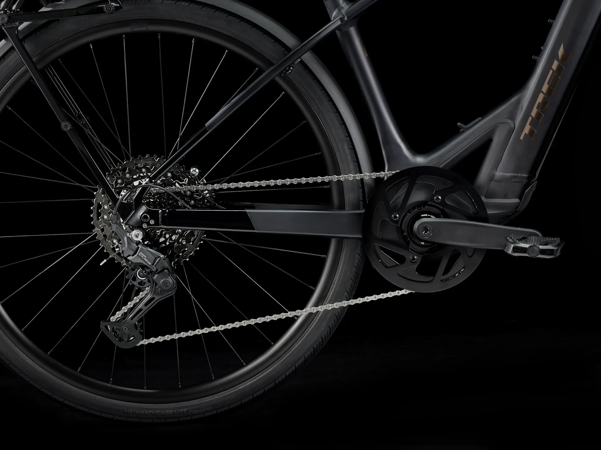 FX+ 7 to wyjątkowo lekki, cichy i elegancki rower miejski stworzony z myślą o odwiedzaniu miejskiej zieleni i sprawnych dojazdach do pracy. Dodająca pewności geometria i elegancka rama z niską rurą górną ułatwiają manewry, wsiadanie i zsiadanie. Z kolei kompaktowy, cichy i niezwykle płynnie pracujący silnik TQ zapewnia zupełnie naturalne wspomaganie. To rower gotowy na wszystko, a to dzięki lekkiemu widelcowi z włókna węglowego, wbudowanym lampkom przednim i tylnym, hydraulicznym hamulcom tarczowym oraz precyzyjnej zmianie biegów Shimano CUES.