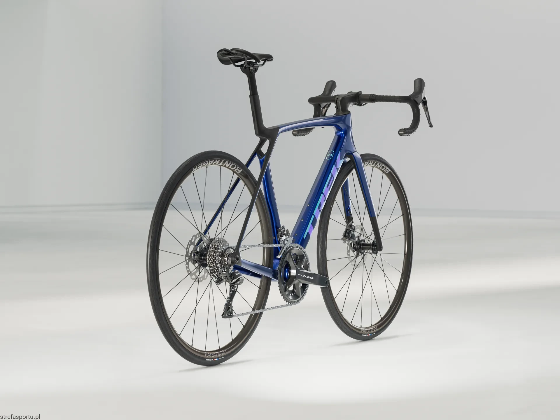 Madone SL 5 Gen 8 to lekki i aerodynamiczny rower szosowy, z którym technologie elit peletonu trafiają do bardziej przystępnych segmentów. Zapewnia korzyści aero droższego Madone SLR Gen 8, ale z tańszym włóknem węglowym OCLV 500 oraz dwuczęściowym kokpitem z ukrytym prowadzeniem przewodów i linek. Jego gotowa na wyścigi geometria gwarantuje zwinność podczas sprintów, a jednocześnie kontrolę na szybkich zjazdach. Grupa Shimano 105 pozwala utrzymać cenę w ryzach przy zachowaniu niezawodnej mechanicznej pracy, której ufasz.