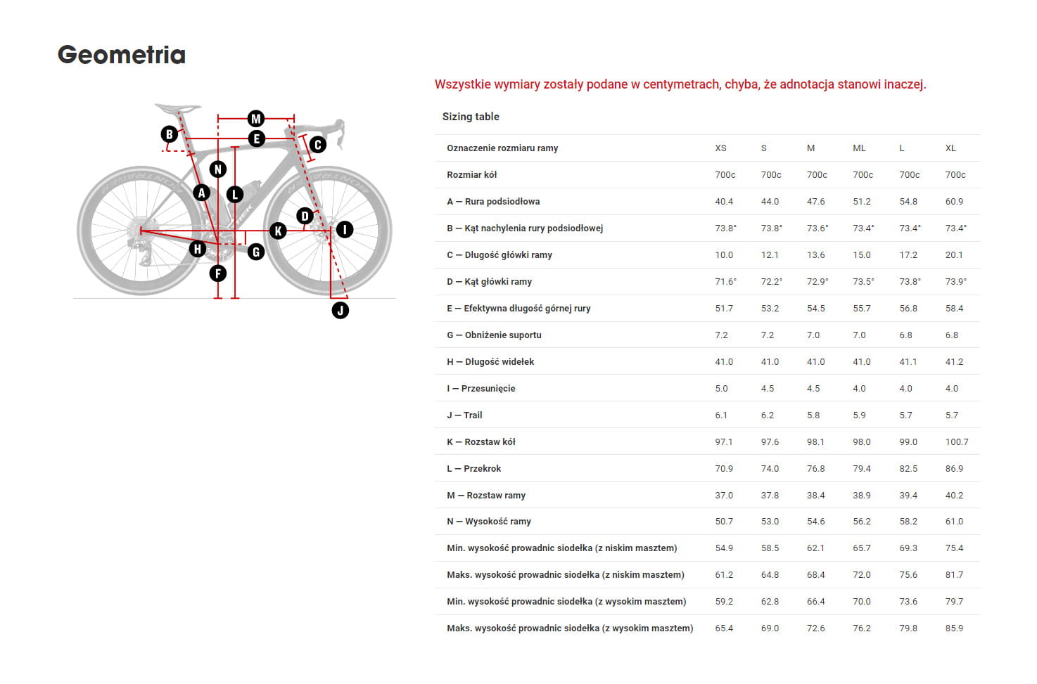 - Rama Włókno węglowe OCLV Serii 500, kształty rur Full System Foil, rura podsiodłowa IsoFlow, system sterów RCS, prowadzenie przewodów elektronicznych lub linek, aerodynamiczna prowadnica łańcucha przystosowana do demontażu, suport T47, hamulce tarczowe flat mount, uniwersalny hak przerzutki UDH, sztywna oś przelotowa 142x12 mm