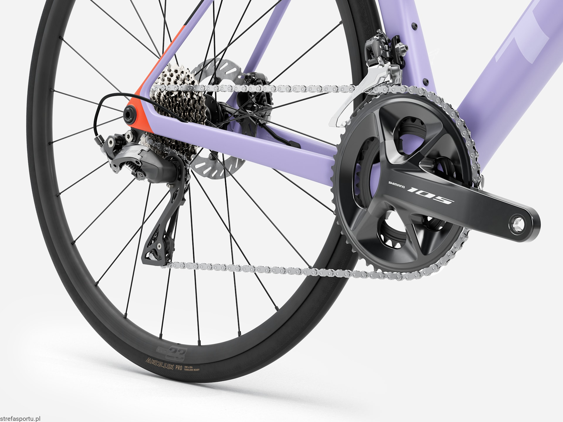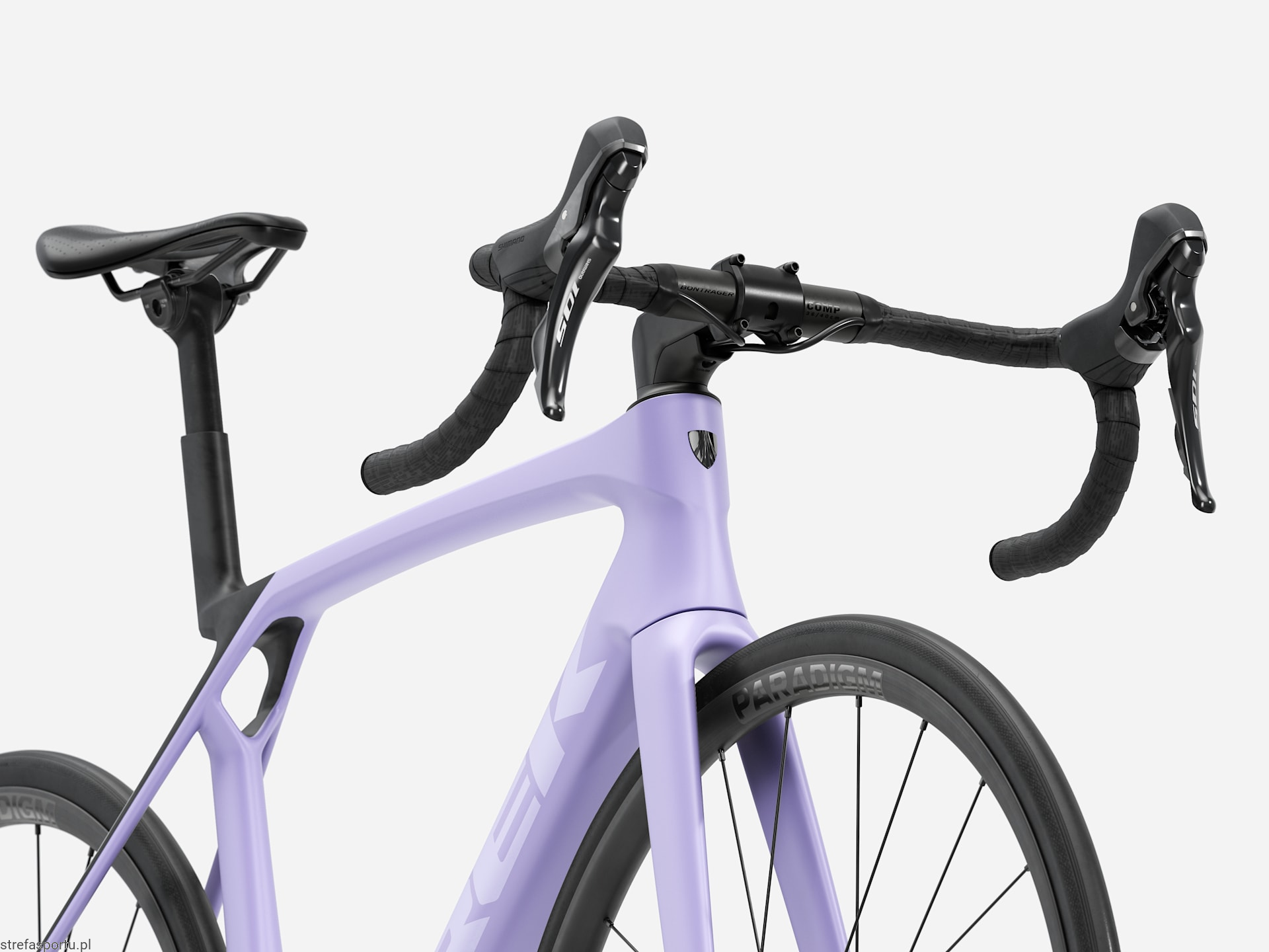 Madone SL 5 Gen 8 to lekki i aerodynamiczny rower szosowy, z którym technologie elit peletonu trafiają do bardziej przystępnych segmentów. Zapewnia korzyści aero droższego Madone SLR Gen 8, ale z tańszym włóknem węglowym OCLV 500 oraz dwuczęściowym kokpitem z ukrytym prowadzeniem przewodów i linek. Grupa Shimano 105 oraz kierownica i koła z aluminium pozwalają utrzymać cenę w ryzach przy zachowaniu niezawodnej mechanicznej pracy, której ufasz.