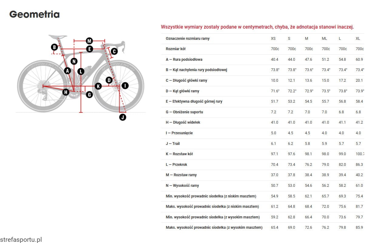 - Rama Włókno węglowe OCLV Serii 500, kształty rur Full System Foil, rura podsiodłowa IsoFlow, system sterów RCS, prowadzenie przewodów elektronicznych lub linek, aerodynamiczna prowadnica łańcucha przystosowana do demontażu, suport T47, hamulce tarczowe flat mount, uniwersalny hak przerzutki UDH, sztywna oś przelotowa 142x12 mm