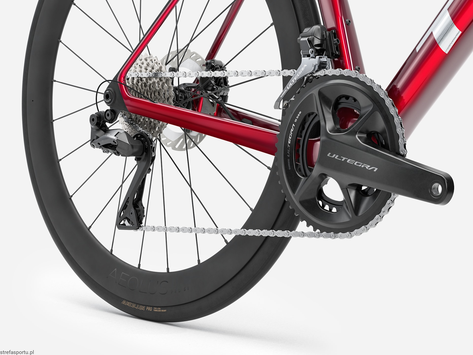- Koło tylne Bontrager Aeolus Pro 51, włókno węglowe OCLV, przystosowane do zastosowania bezdętkowego Tubeless Ready, bębenek Shimano 11/12-rzędowy, sztywna oś przelotowa 142 x 12 mm