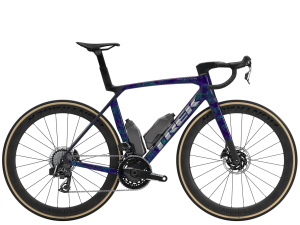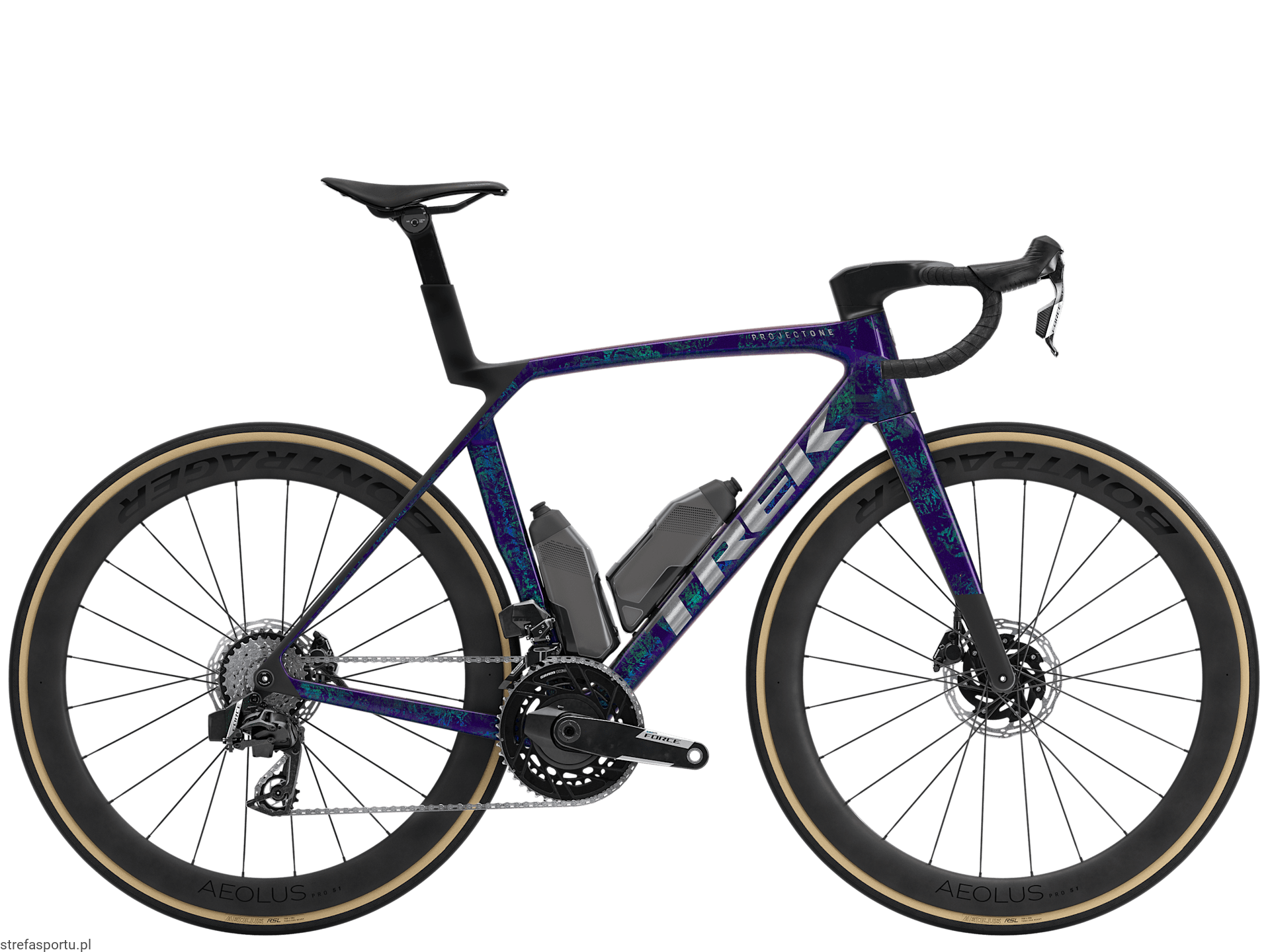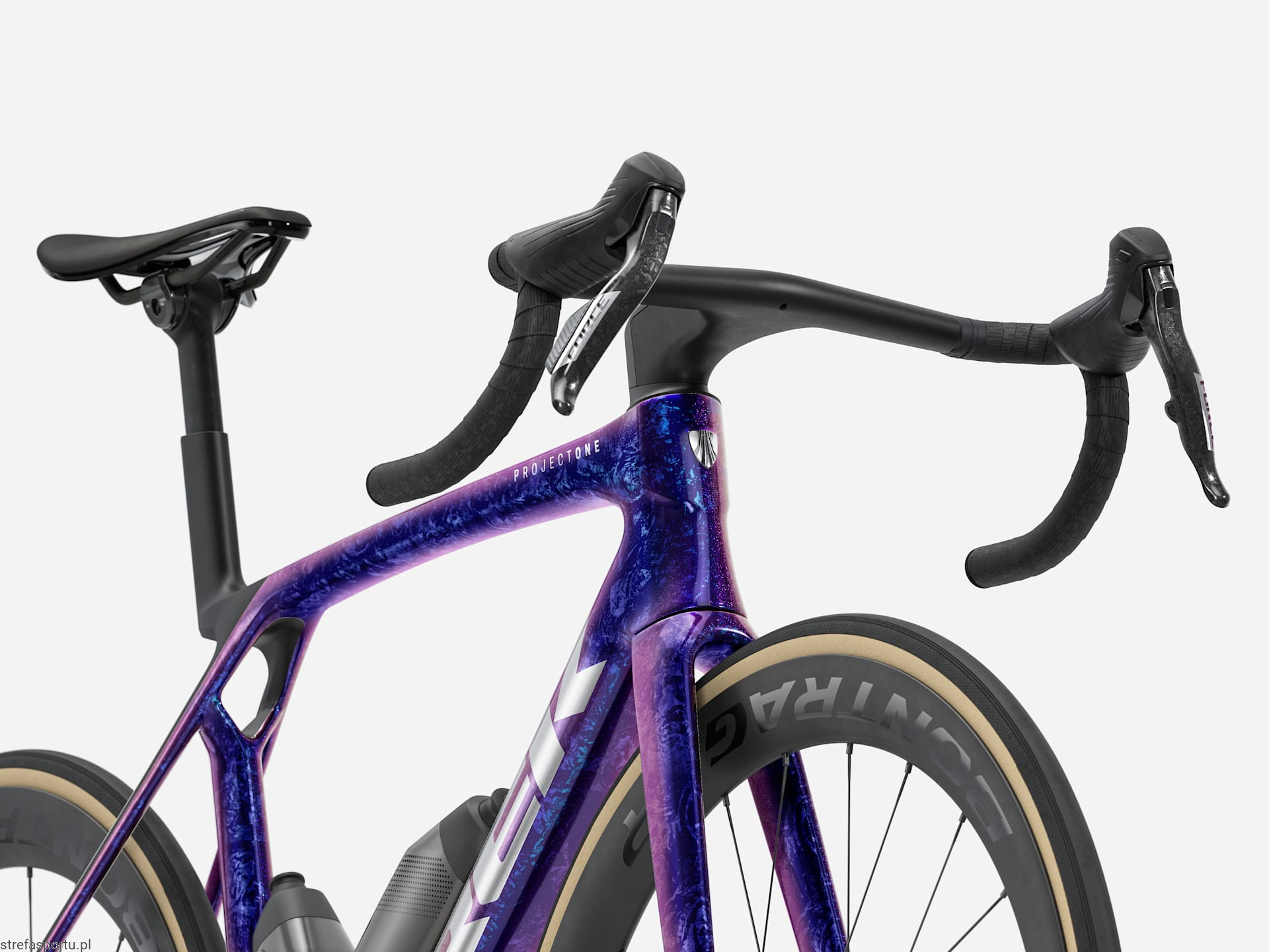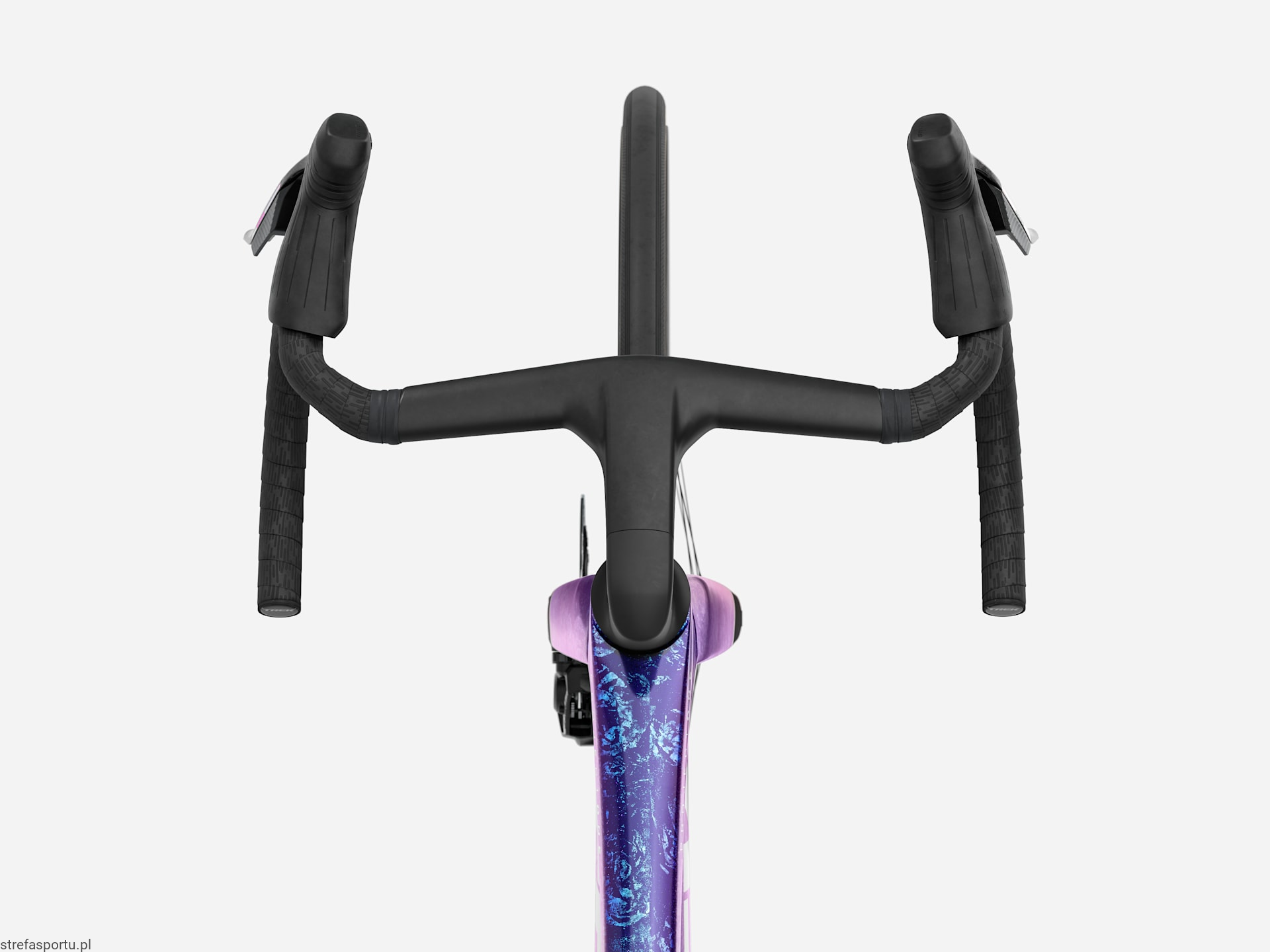 Madone SLR 7 AXS Gen 8 to aerodynamiczny, lekki jak piórko rower szosowy stworzony do ścigania. Rama z włókna węglowego OCLV Serii 900 ogranicza masę jednocześnie zapewniając korzyści aerodynamiczne, a technologia IsoFlow dba o to, by prędkość stanowiła uszczerbku na prędkości. Wyposażony jest w sterowany bezprzewodowo napęd 2x12 grupy SRAM Force AXS E1 z mechanizmem korbowym z miernikiem mocy, koła z włókna węglowego Bontrager Aeolus Pro 51, jednoczęściową kierownicę zintegrowaną z mostkiem Trek Aero RSL, a także bidony i koszyki na bidony RSL dodatkowo ograniczające opory powietrza.