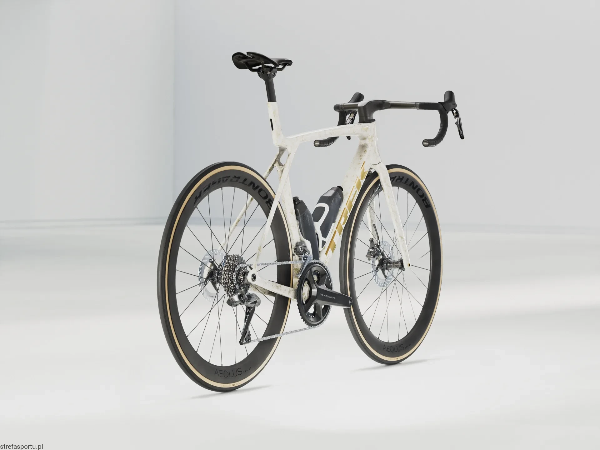 - Koło tylne Bontrager Aeolus Pro 51, włókno węglowe OCLV, przystosowane do zastosowania bezdętkowego Tubeless Ready, bębenek Shimano 11/12-rzędowy, sztywna oś przelotowa 142 x 12 mm