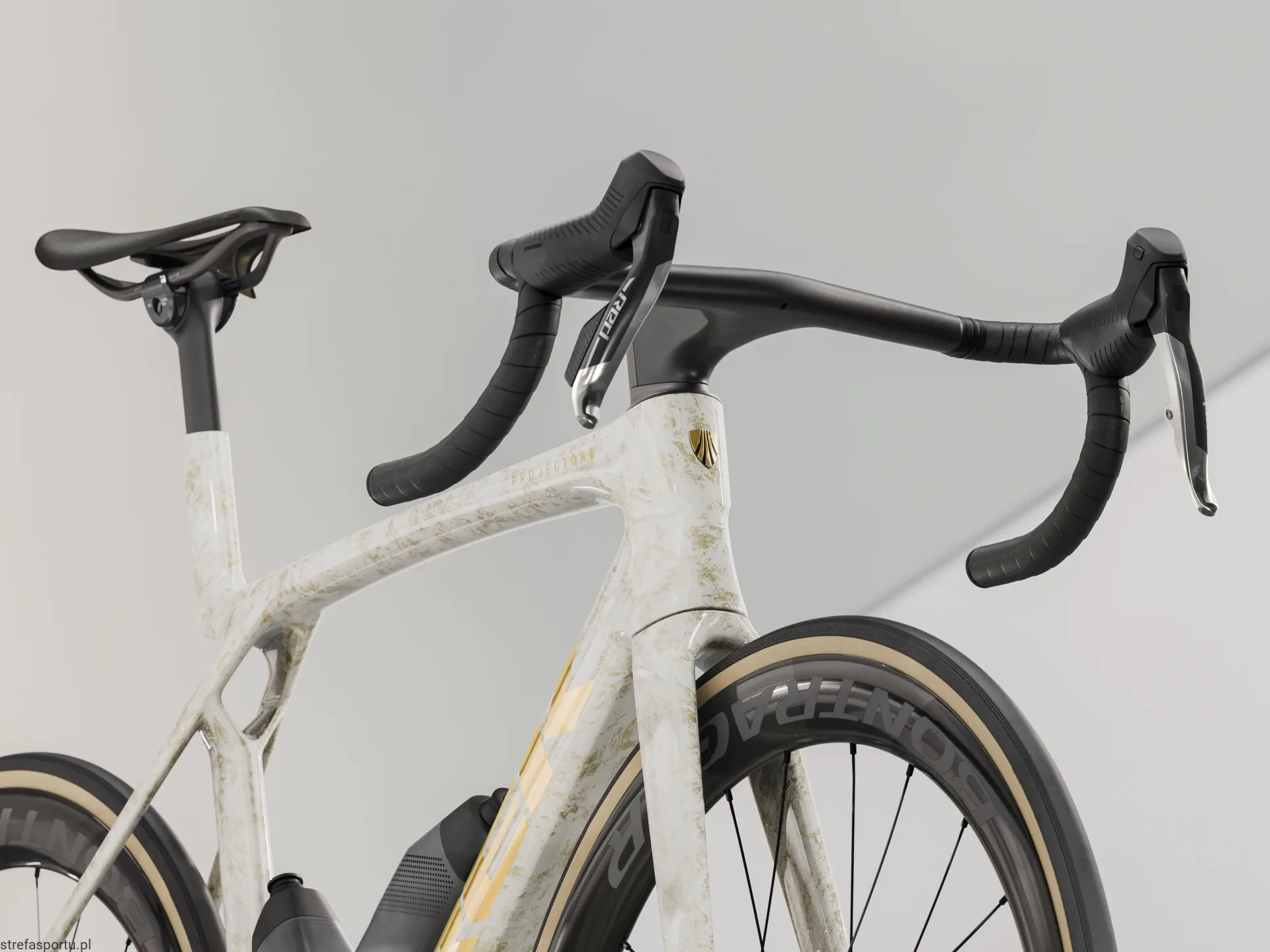 Niewiarygodnie lekka rama z naszego najlepszego włókna węglowego, OCLV Serii 900, z aerodynamicznymi kształtami rurek i technologią zapewniającą komfort IsoFlow, a dodatkowo aerodynamiczne bidony i koszyki RSL, które pozwalają oszczędzić jeszcze więcej energii. Najnowszy napęd SRAM, superlekki RED AXS E1 i miernik mocy umożliwiający treningi podparte twardymi danymi. Uniwersalny hak przerzutki (UDH), dzięki któremu znajdziesz część zamienną zawsze i wszędzie. Całość dopełniają koła z włókna węglowego do montażu bezdętkowego Bontrager Aeolus RSL 51 i aerodynamiczna kierownica zintegrowana z mostkiem Trek RSL.