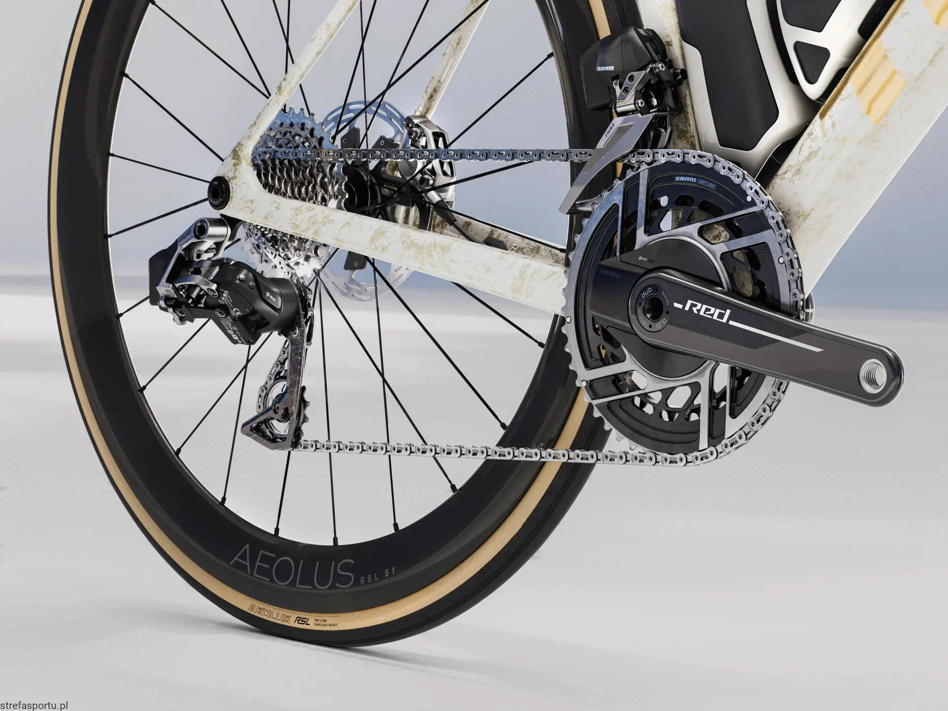 Cieszysz się z precyzyjnej zmiany biegów najlżejszego napędu SRAM, czyli sterowanego bezprzewodowo RED AXS E1, a dodatkowo z wyjątkowo precyzyjnego miernika mocy pozwalającego lepiej wykorzystać treningi