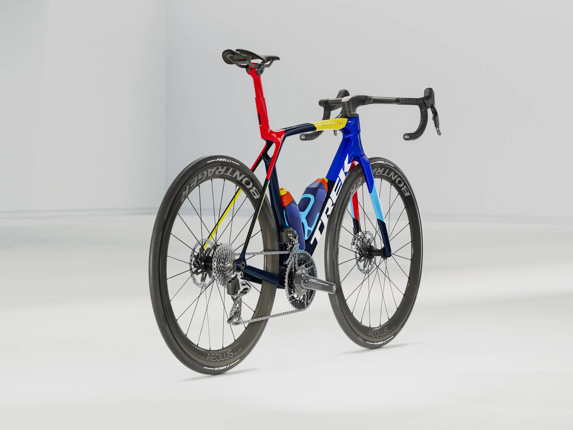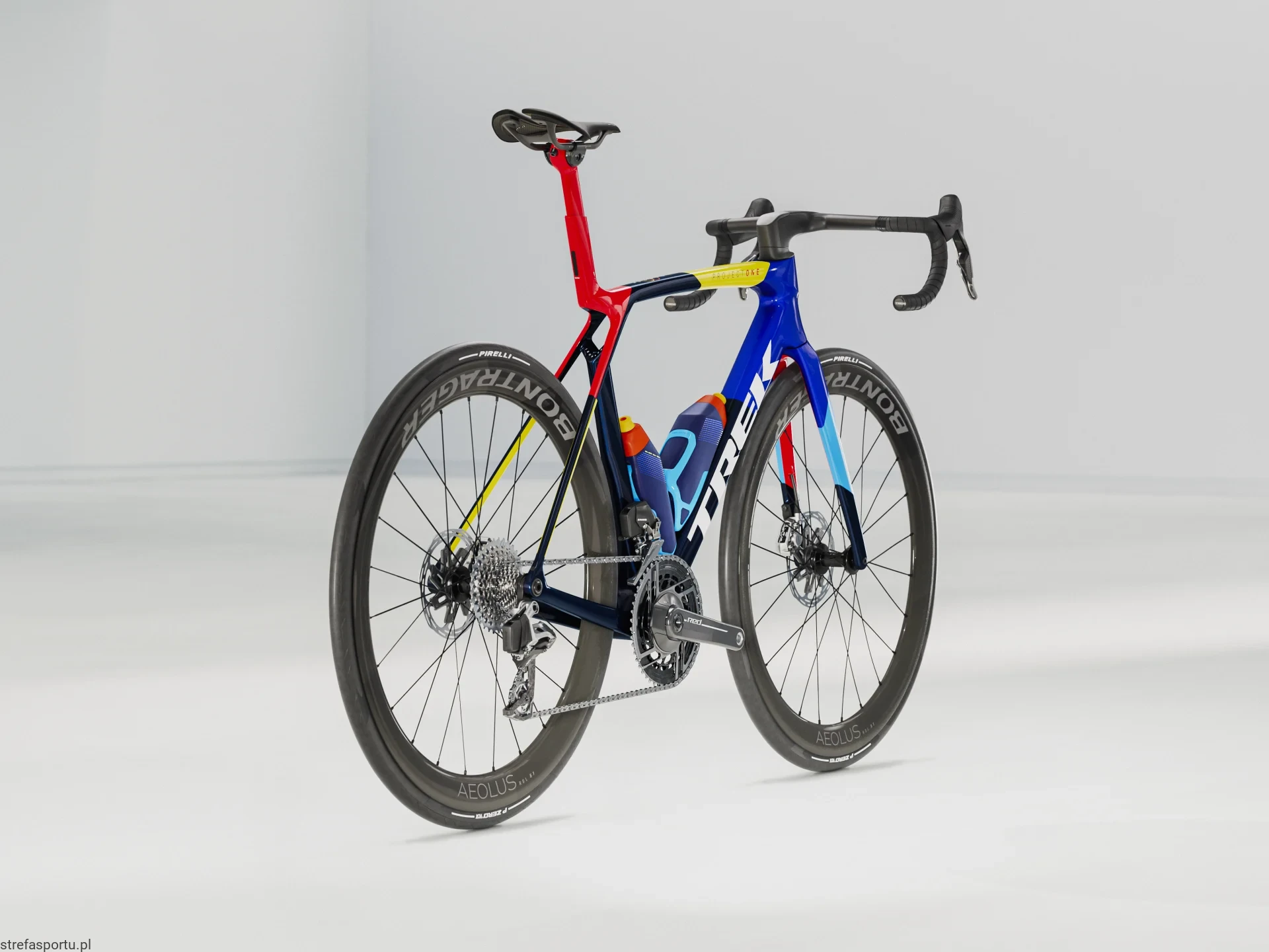 Niewiarygodnie lekka rama z naszego najlepszego włókna węglowego, OCLV Serii 900, z aerodynamicznymi kształtami rurek i technologią zapewniającą komfort IsoFlow, a dodatkowo aerodynamiczne bidony i koszyki RSL, które pozwalają oszczędzić jeszcze więcej energii. Najnowszy napęd SRAM, superlekki RED AXS E1 i miernik mocy umożliwiający treningi podparte twardymi danymi. Uniwersalny hak przerzutki (UDH), dzięki któremu znajdziesz część zamienną zawsze i wszędzie. Całość dopełniają koła z włókna węglowego do montażu bezdętkowego Bontrager Aeolus RSL 51 i aerodynamiczna kierownica zintegrowana z mostkiem Trek RSL.