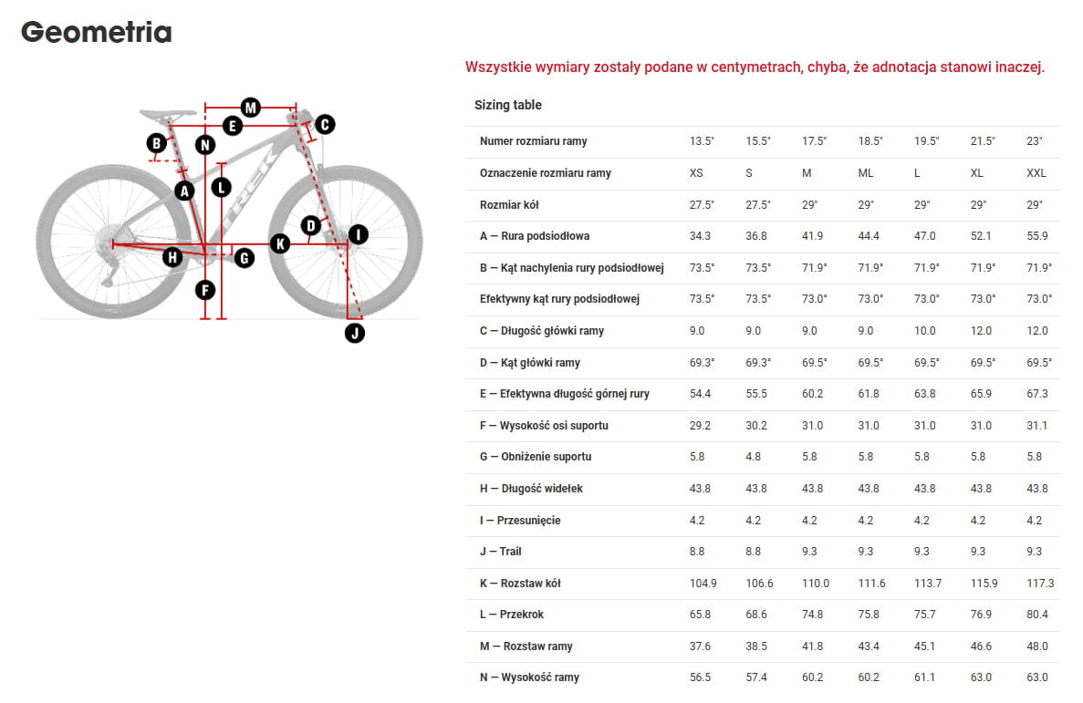 - Maks. rozmiar opon Rama: 29 x 2,20" (XS i S: 27,5 x 2,4"), Widelec: Patrz specyfikacja producenta