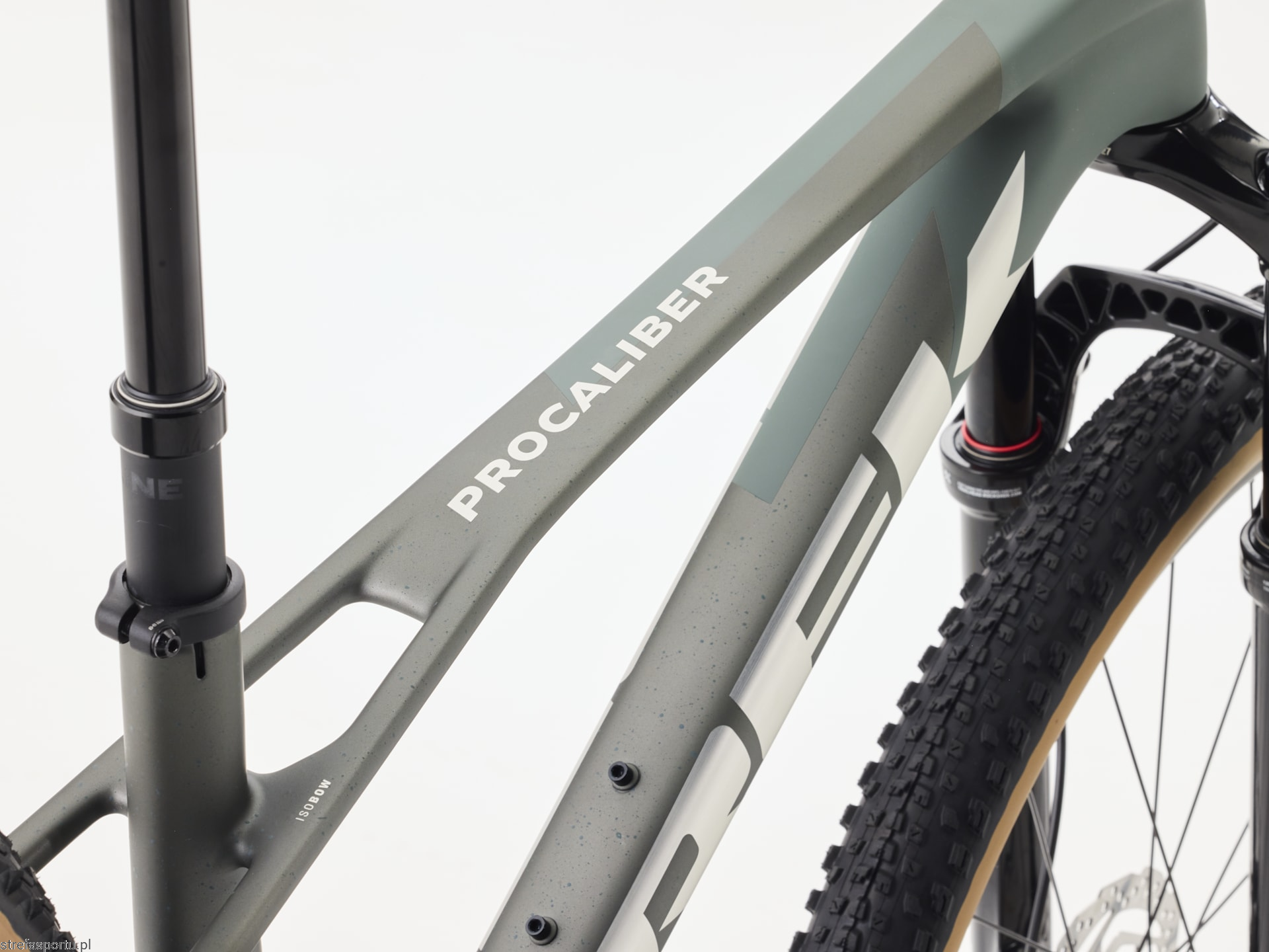 - Rama Włókno węglowe OCLV Mountain, IsoBow, zwężana główka ramy, wewnętrzne prowadzenie linek i przewodów, wyważone bezpośrednie mocowanie hamulca, Boost148
