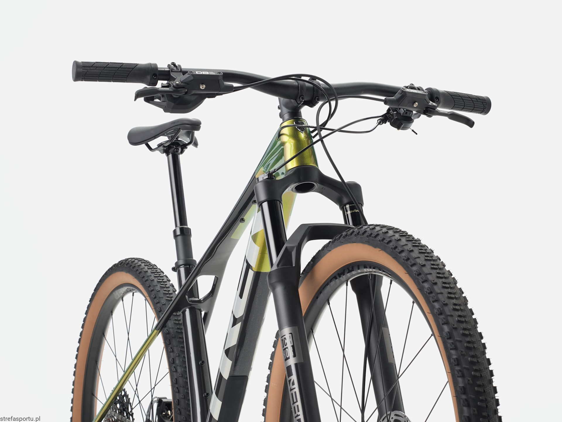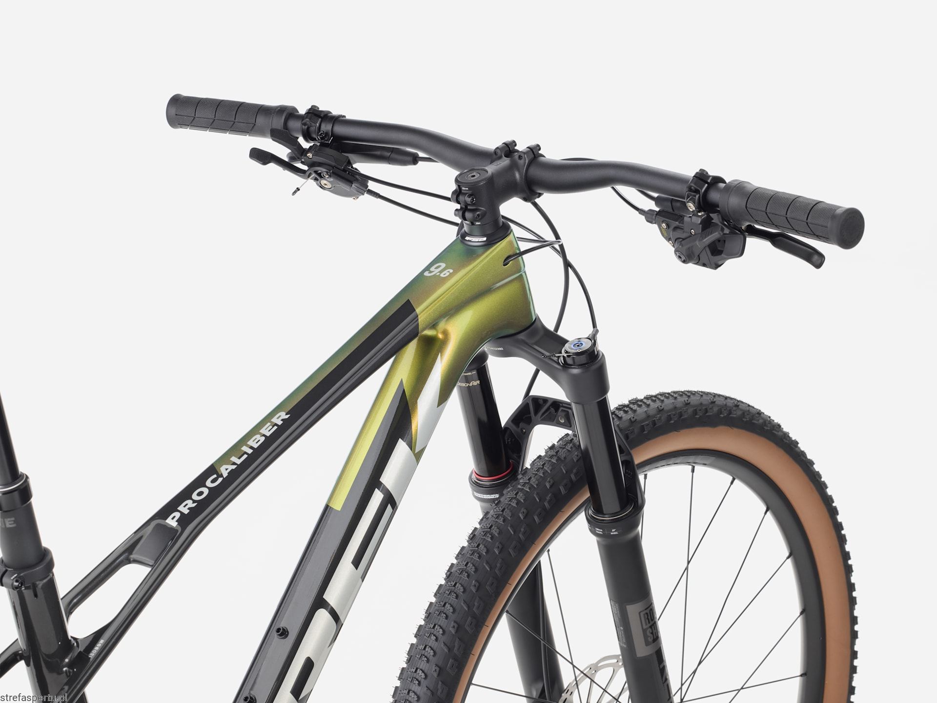 Procaliber 9.6 to gotowy na wyścigi hardtail cross country stworzony do błyskawicznej jazdy po szlakach. Jego lekka i szybka rama z włókna węglowego gwarantuje wygodę jazdy, dzięki wykorzystaniu technologii IsoBow, a widelec RockShox Reba RL o 120 mm skoku zjada kamienie i korzenie. Zmiany przełożenia odbywają się płynnie nawet na najbardziej wymagających podjazdach, dzięki sterownemu mechanicznie napędowi SRAM Eagle 70, a 4-tłoczkowe hamulce SRAM DB 6 zatrzymują w moment, gdy tylko tego potrzebujesz.