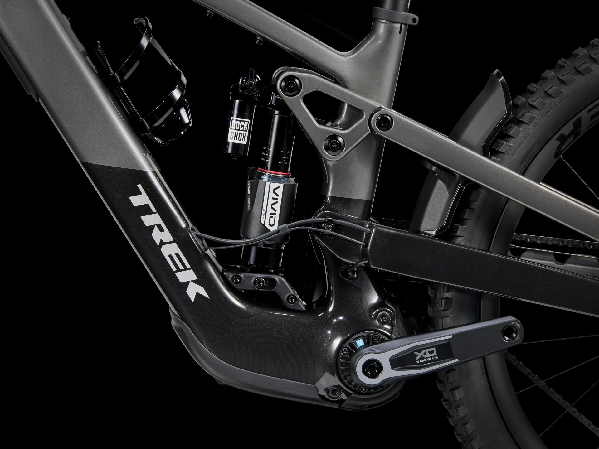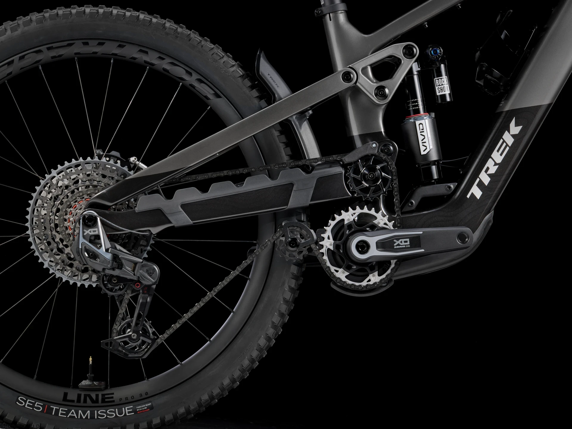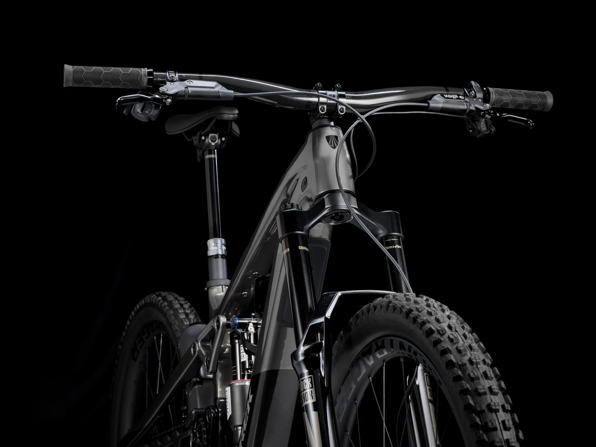 Użyte technologie - Rama z włókna węglowego OCLV Mountain z zawieszeniem z wysokim punktem obrotu i cichym a jednocześnie mocnym silnikiem TQ HPR50 (50 Nm, 250 W) z akumulatorem 580 Wh, a także dodatkowym miejscem na schowek wewnętrzny. Skok 170 mm z przodu i z tyłu zapewniają widelec RockShox ZEB Ultimate Deluxe ze sprężyną DebonAir i tłumieniem Charger 3.1 RC2 oraz damper RockShox Vivid Ultimate. Koła z włókna węglowego OCLV Mountain Bontrager Line Pro 30 (29" z przodu, 27,5" z tyłu) do rozprawienia się z trudnym terenem, sztyca regulowana RockShox Reverb, hamulce 4-tłoczkowe SRAM Maven Silver oraz sterowany bezprzewodowo, mocowany bezpośrednio napęd SRAM X0 AXS.