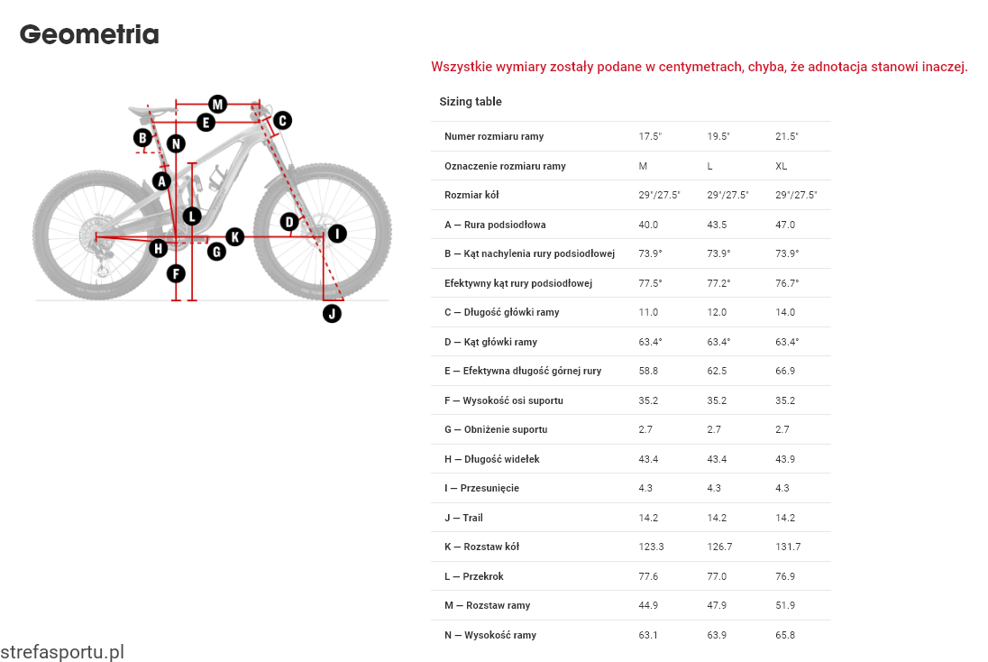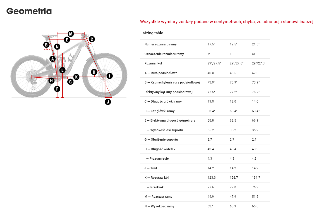 - Rama Włókno węglowe OCLV, demontowany akumulator, wysoki piwot, napinacz łańcucha, stery z regulacją kąta, regulowany stosunek skoku kołą do ugięcia dampera, zintegrowana osłona ramy, wewnętrzne prowadzenie linek i przewodów, aluminiowy łącznik wahacza, górne mocowanie prowadnicy łańcucha, linia łańcucha 55 mm, ABP, uniwersalny hak przerzutki UDH, sztywna oś przelotowa 148 x 12 mm, 170 mm skoku