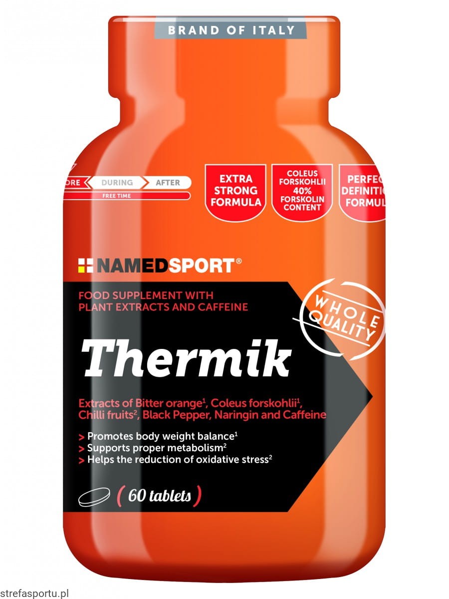 Suplement termogeniczny oparty na kofeinie i wybranych ekstraktach roślinnych. W każdej tabletce znajduje się 200 mg kofeiny i ekstraktów roślinnych. Thermik jest wskazany w dietach niskokalorycznych, mających na celu kontrolę wagi, dzięki właściwościom składników (chili, ekstrakt z gorzkiej pomarańczy, pokrzywa indyjska), stymuluje metabolizm, sprzyja redukcji masy ciała oraz przyczynia się do drenażu nadmiaru płynów z organizmu.