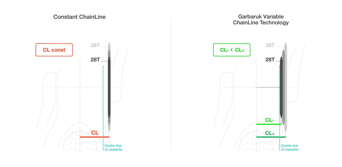 - Optymalną wartość łańcucha napędowego można osiągnąć dzięki technologii zmiennej linii łańcuchowej (VCLT)