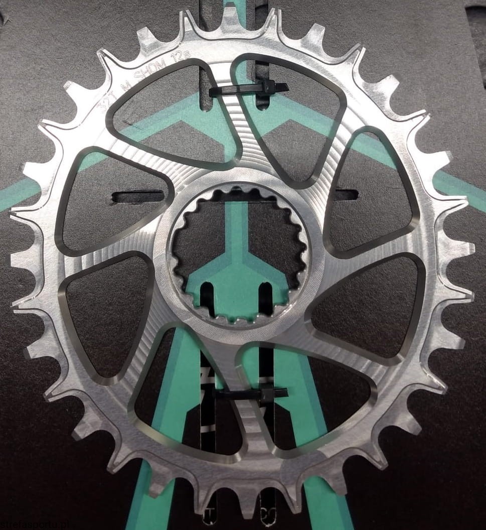 - Oszczędzasz wagę roweru, nie używając pająka mechanizmu korbowego i możesz wybrać tarczę z odpowiednimi specyfikacjami dla twojego układu napędowego