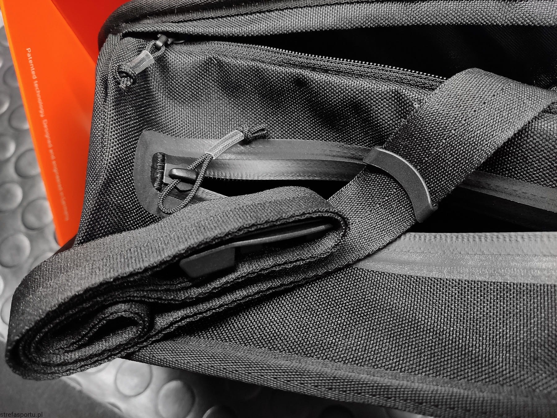 - Chowany i regulowany pasek do noszenia przez ramię lub w pasie