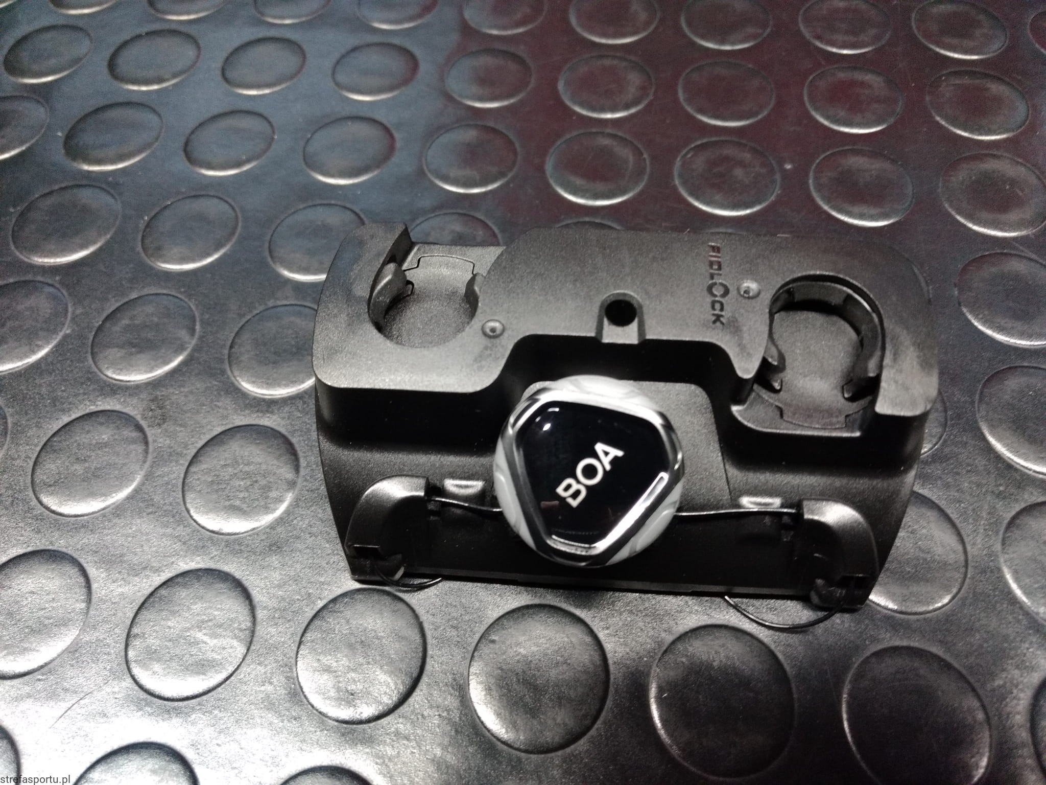 - Uchwyt z systemem BOA do którego możemy przymocować zwykłą butelkę, puszkę, odzież lub inne elementy