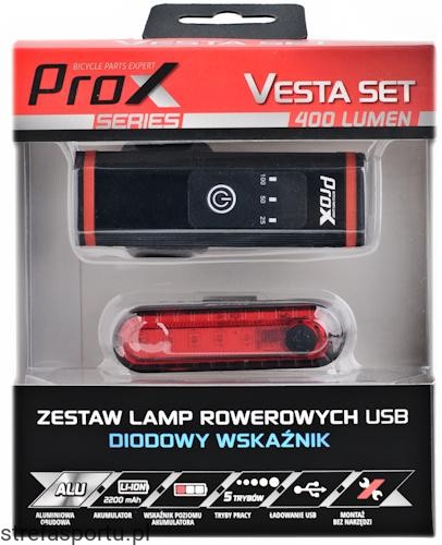 Przód 400Lm tył 10lm. Obydwie lampki ładowane na USB.