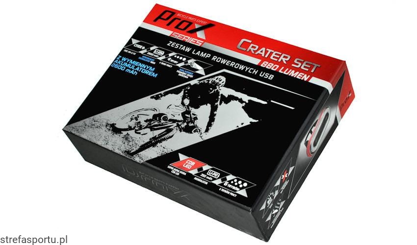 Bardzo wdzięczny zestaw lampek ProX składający się z lampy przedniej Prox Crater oraz lampki tył Prox Iris. Przednia to jasność 880Lm a tył to 50Lm. Bezpieczeństwo na drodze i dobra widoczność gwarantowane.